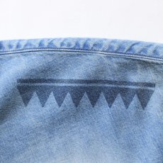 各所にトライバルロゴをプリントしたビンテージ感のあるデニムシャツ。