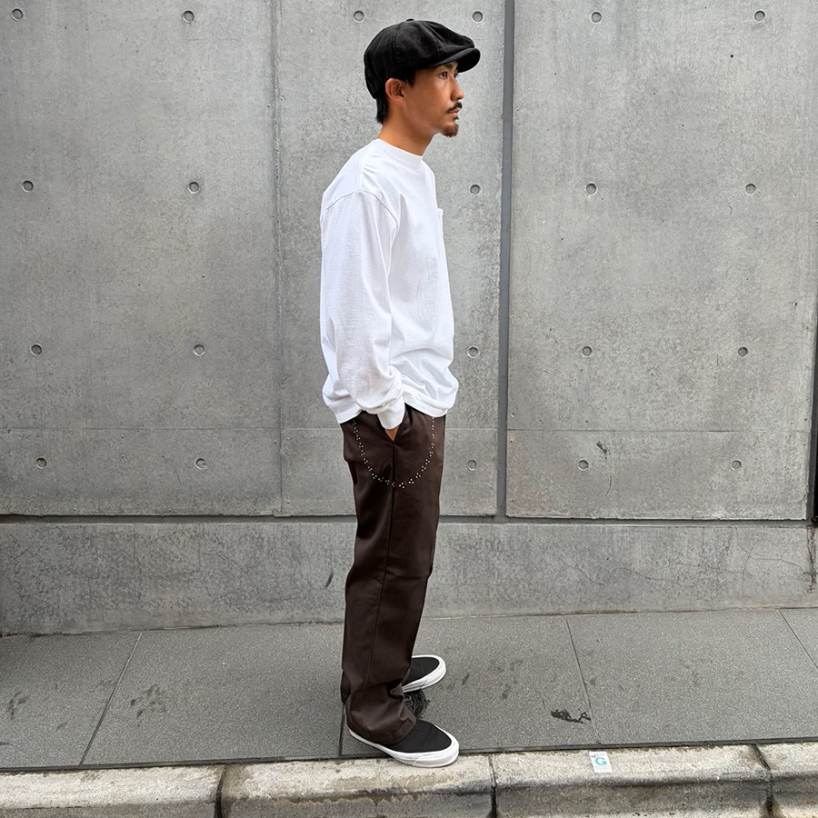 Dickiesの定番「874」に矢をモチーフにしたアロースタッズをウォレットチェーンのようにデザインしています。