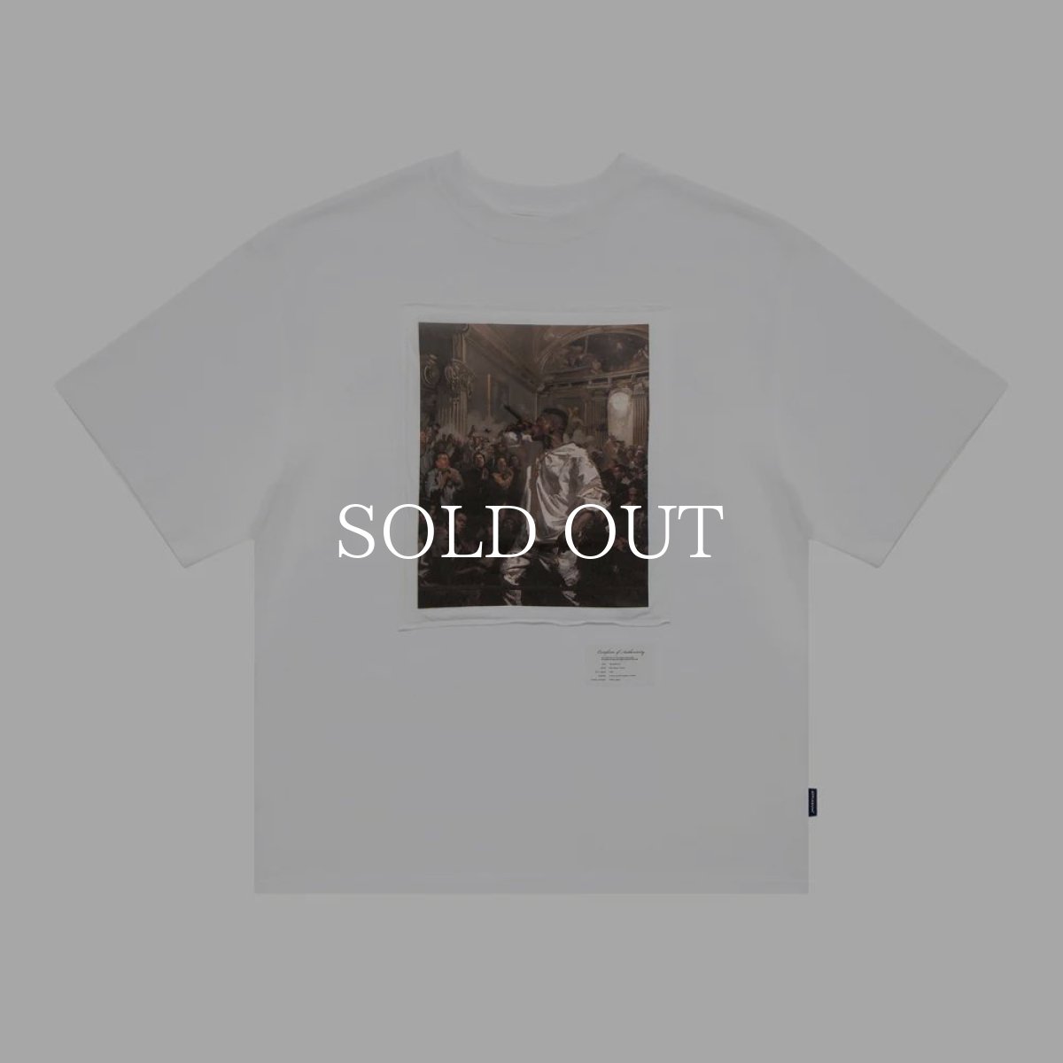 西洋画とラッパーが融合したユニークなグラフィックTシャツ。
