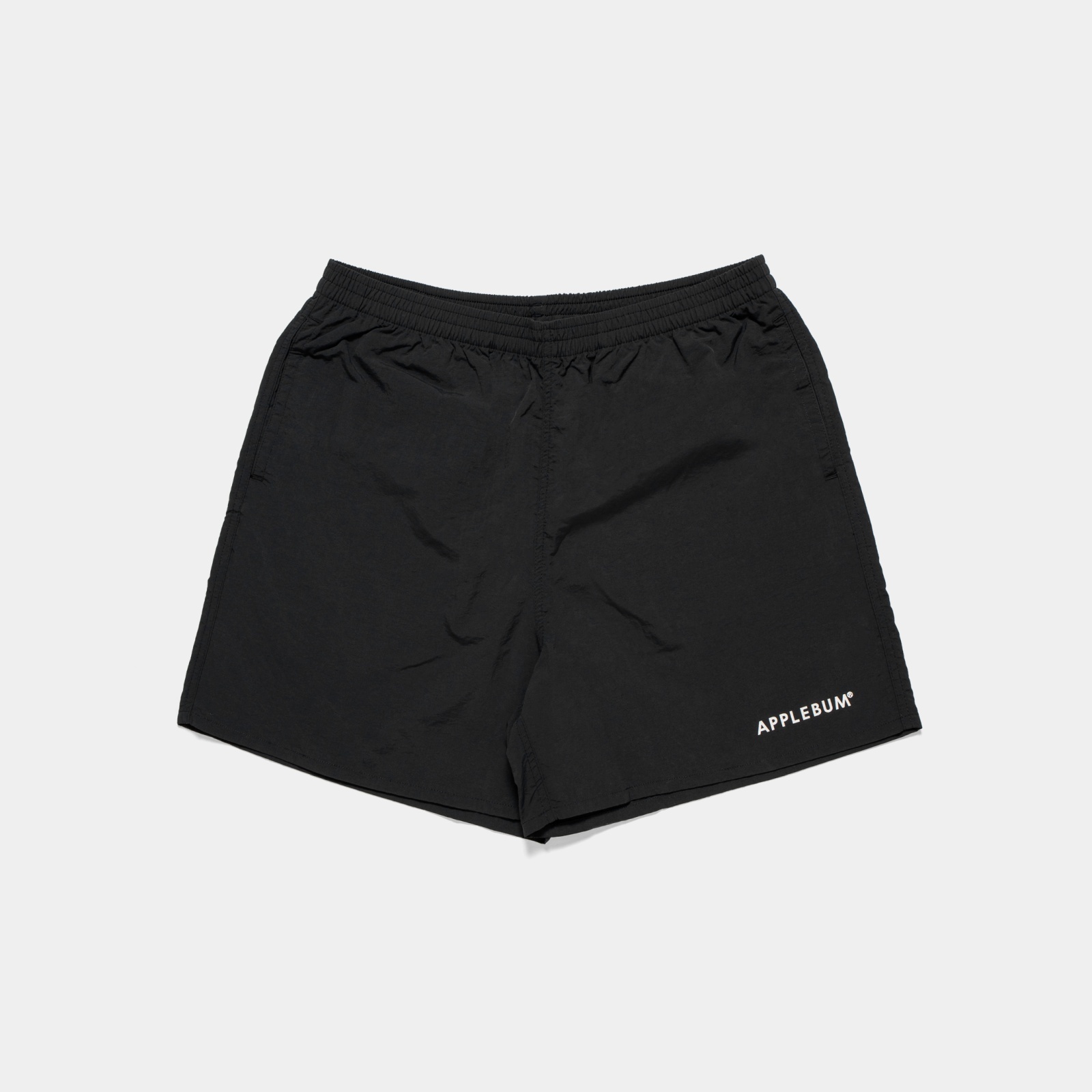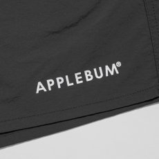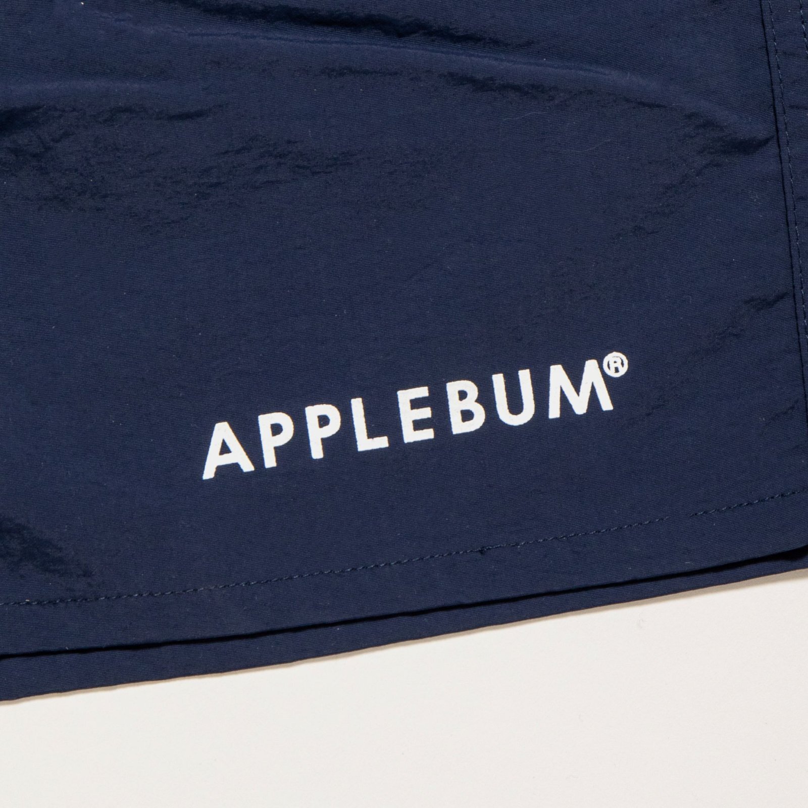 【APPLEBUM】ロゴを裾にプリントしたナイロンショーツ。