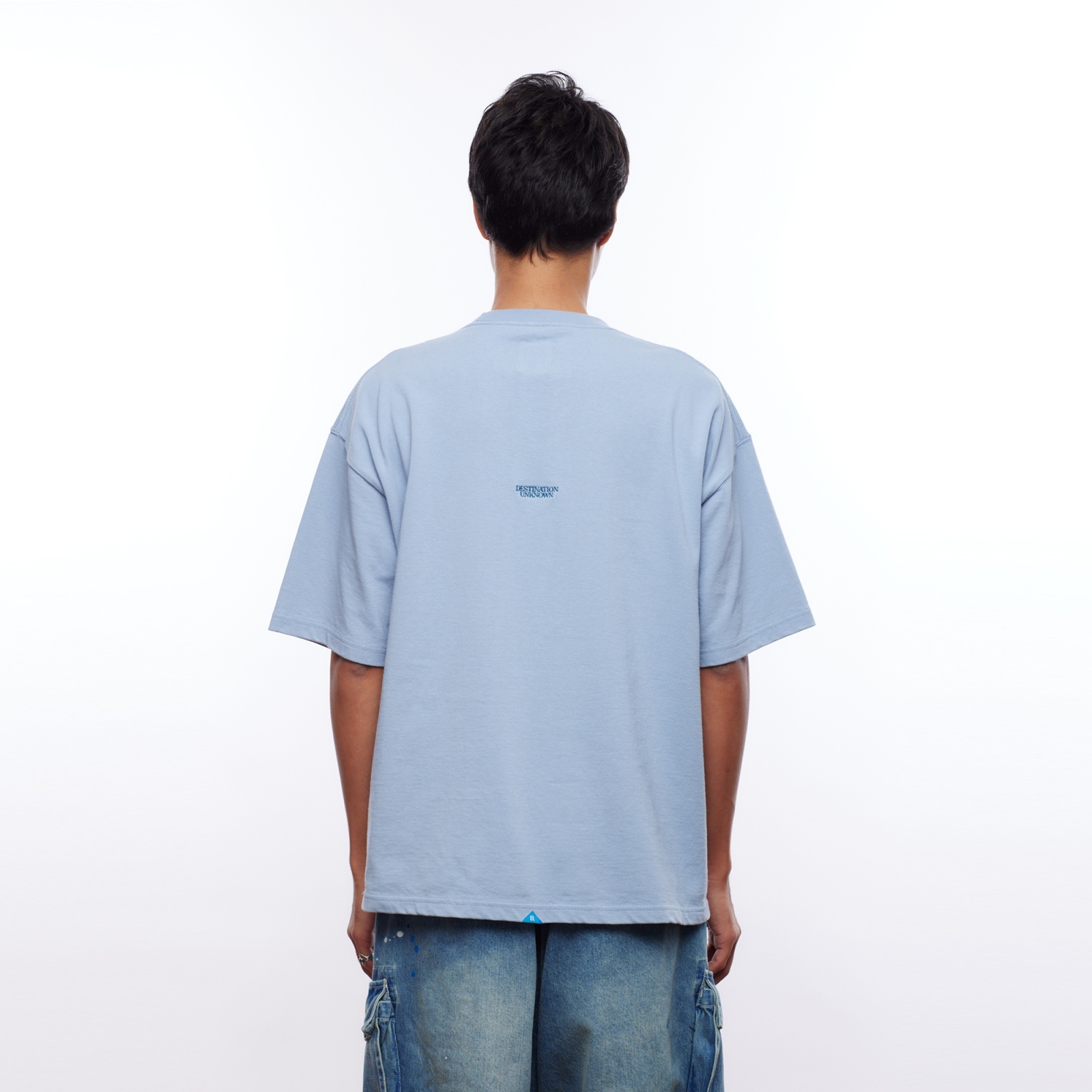 背面にDestination unknownの刺繍、左前裾にはTYVEK LABELが付きます。