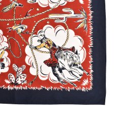 ロデオをイメージしたオリジナルグラフィックをキャンブリック地にプリントした大判バンダナ。