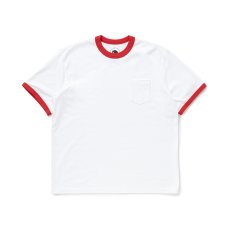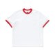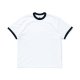 襟・袖を配色切り替えでバインダー付けしたトリムT仕様。左胸にパッチポケットを配置したデザイン。