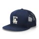 フラットバイザーのメッシュキャップ、フロントにはアイコンのCAロゴを3D刺繍で施しています。