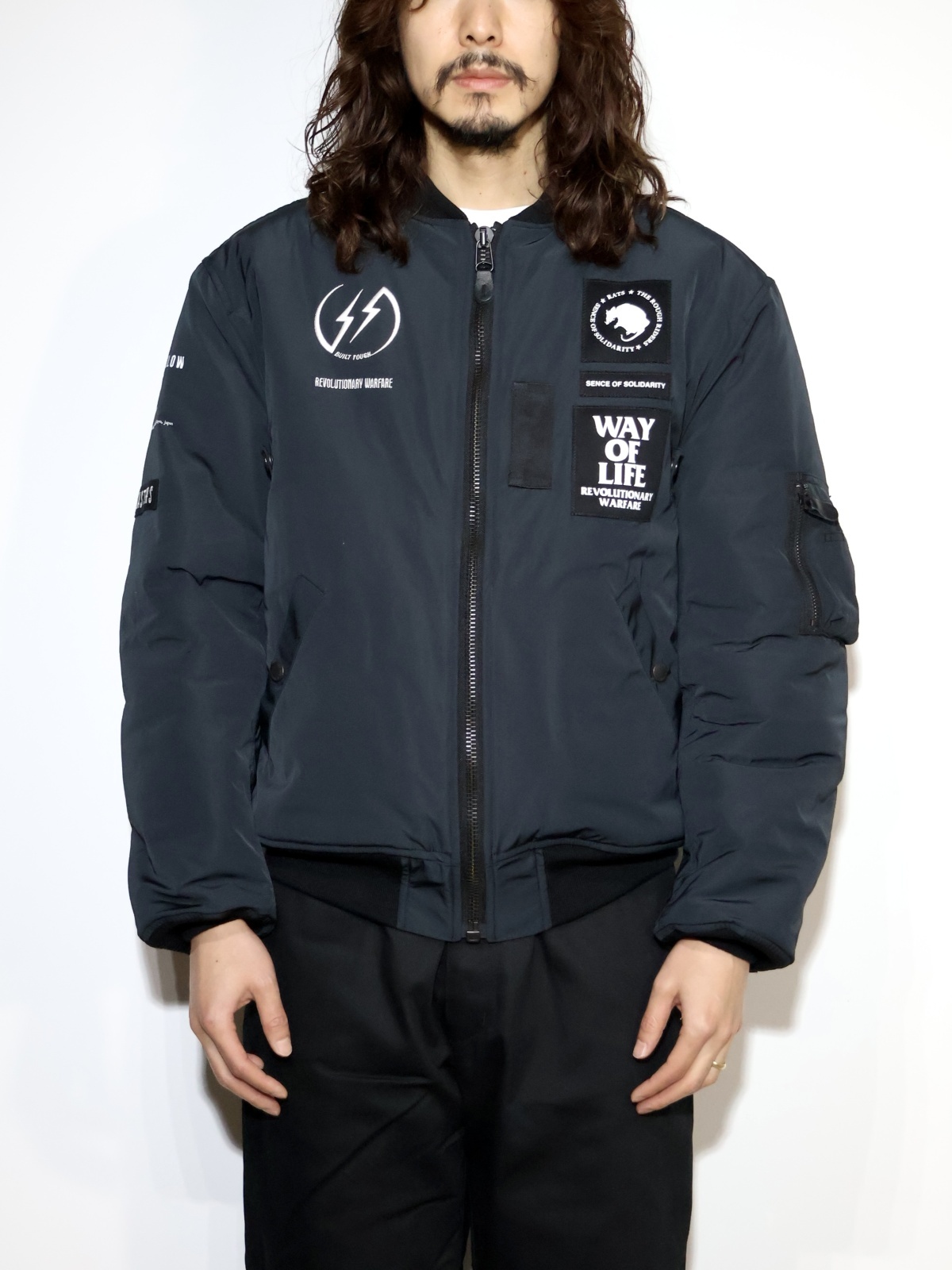 マットな質感、撥水性に富むオリジナルで作成したポリエステル生地を使用したMA-1ジャケット。