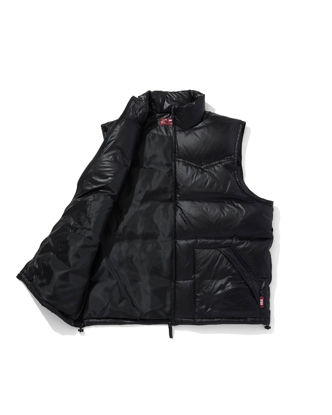襟裏に刺繍でロゴが入るウエスタンヨークダウンベストです。