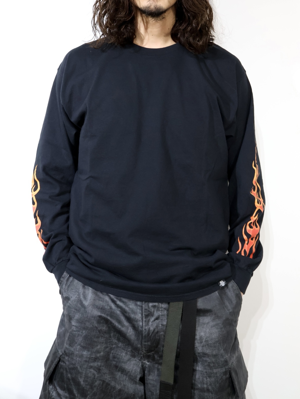 袖と背中にプリントが入るロングスリープTシャツです。