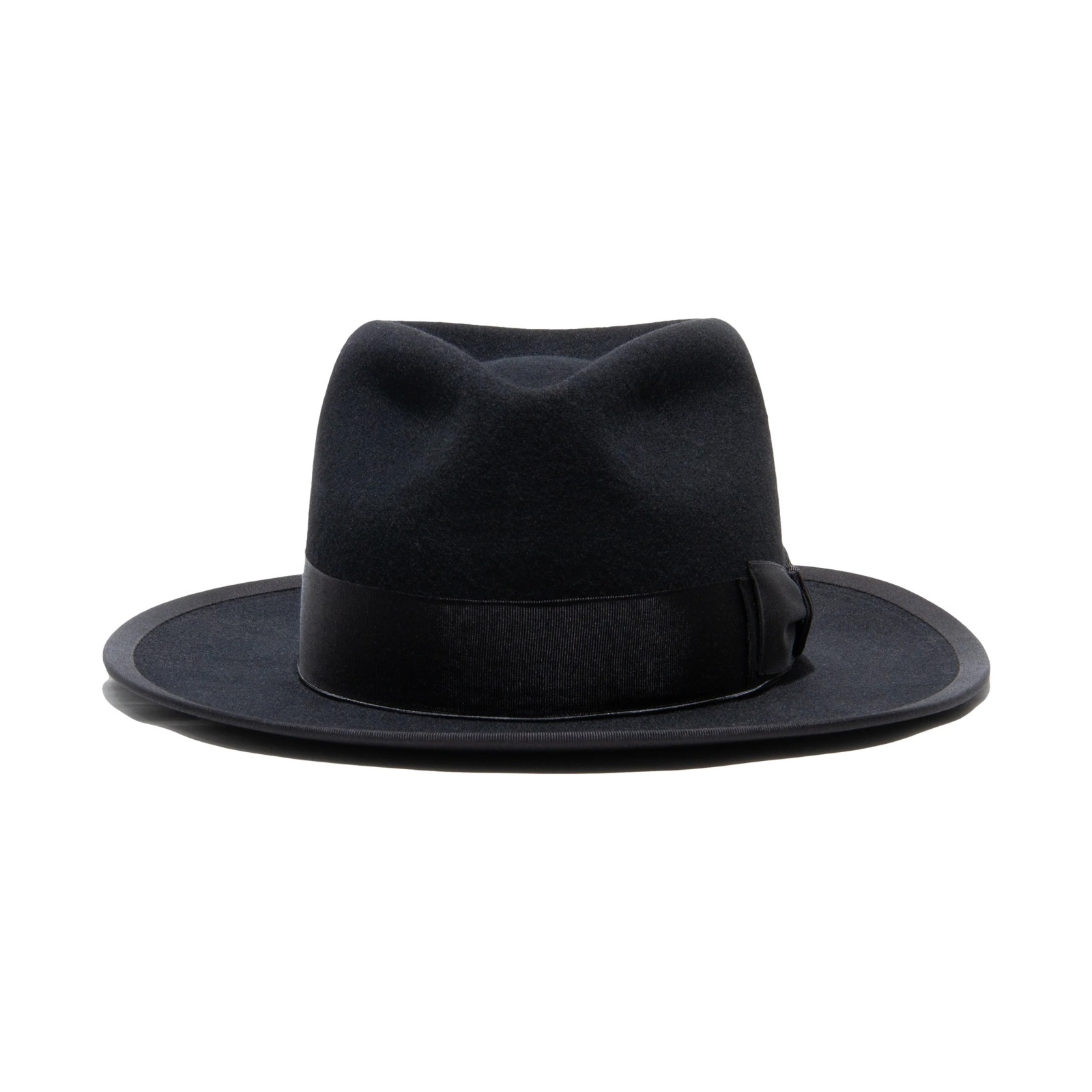 こちらのハットは、その貴重な工場の一つで、1950年代のアメリカで主流であった、金型によるカチッとした成形を基本として作られています。