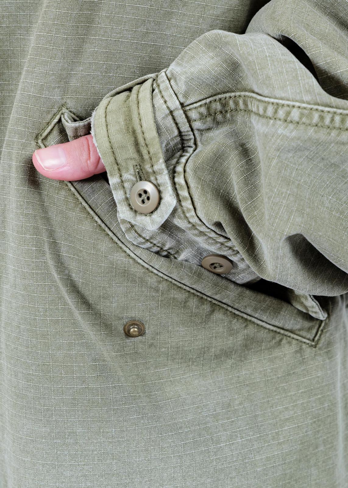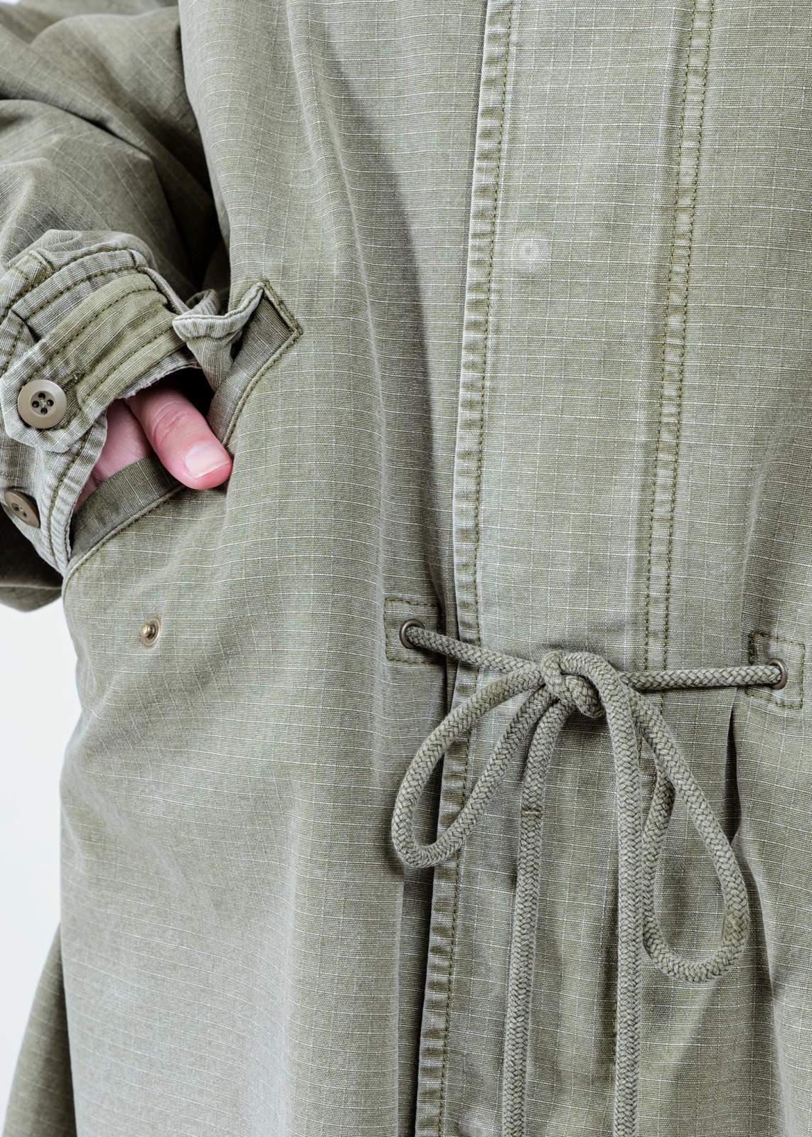 耐久性の高いリップストップ生地を使用したM-65フィッシュテールジャケット。