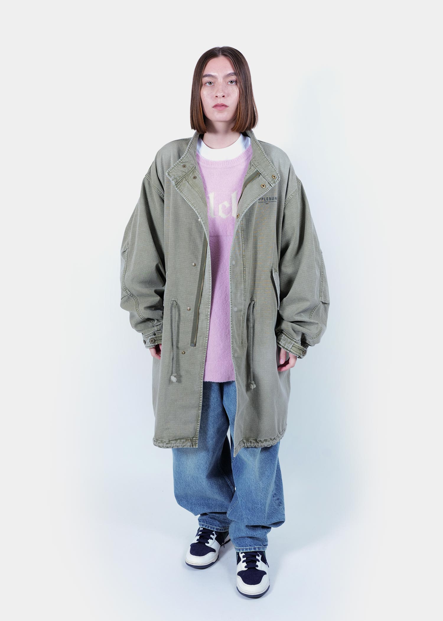 オーバーサイズで重ね着前提の現代的なミリタリーアイテムです。