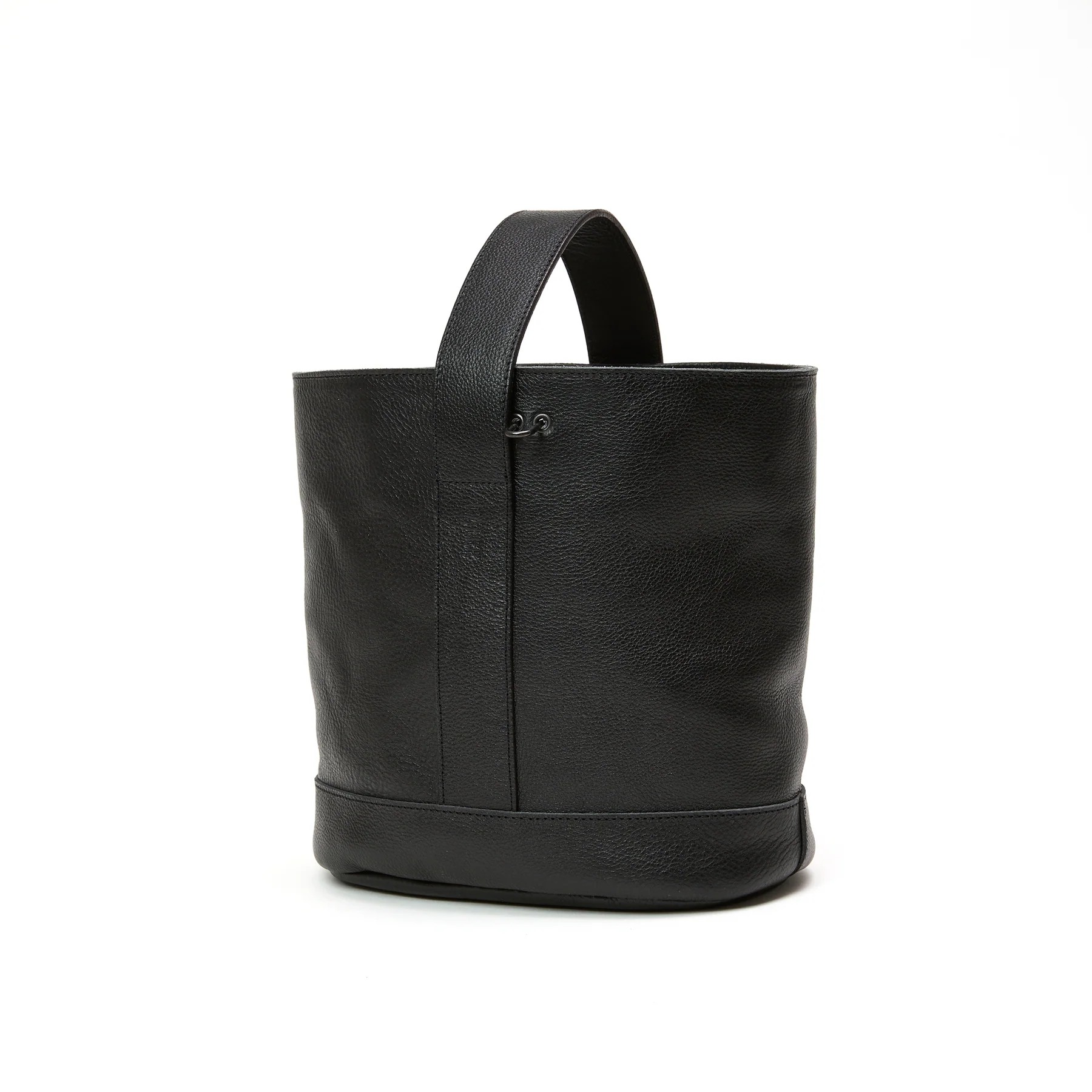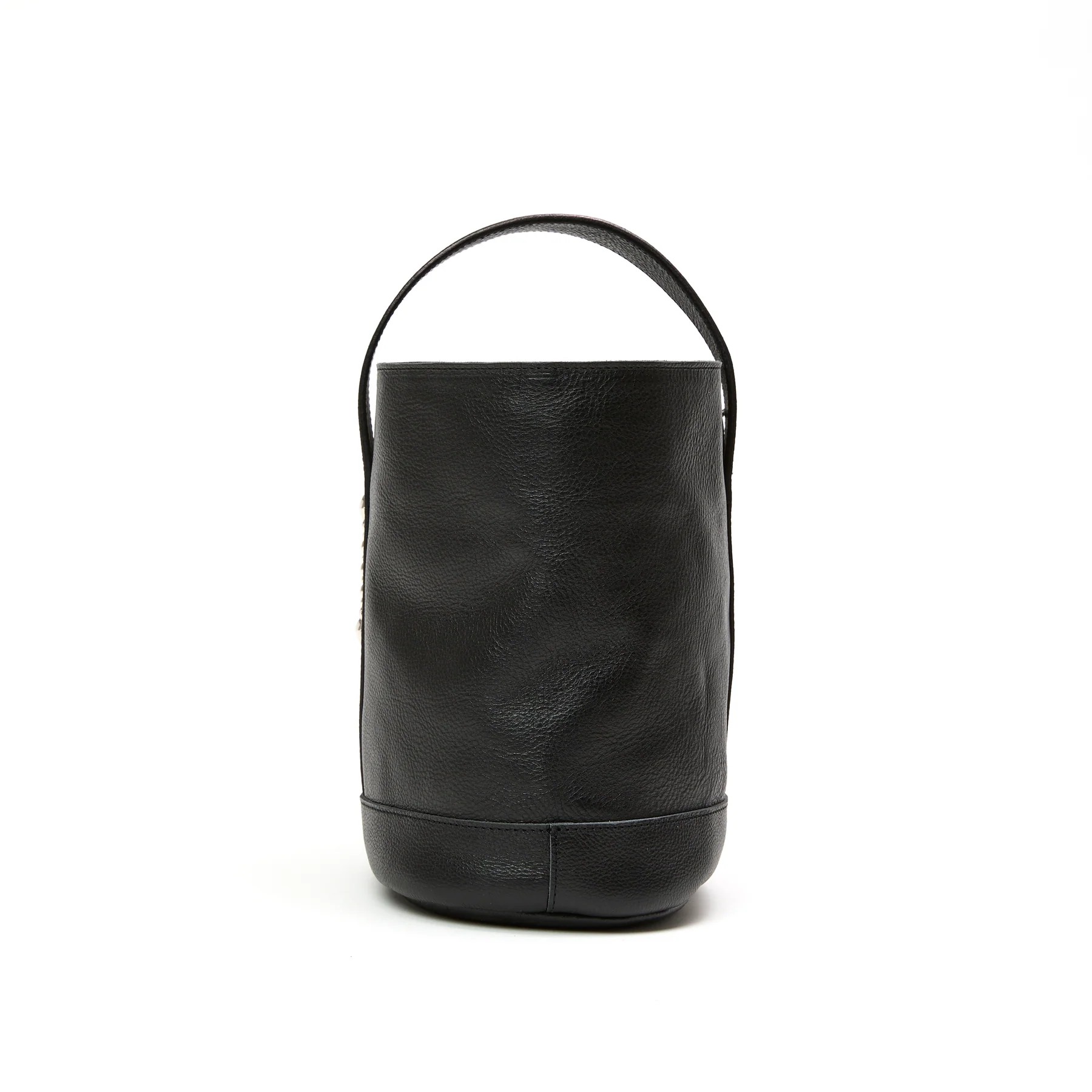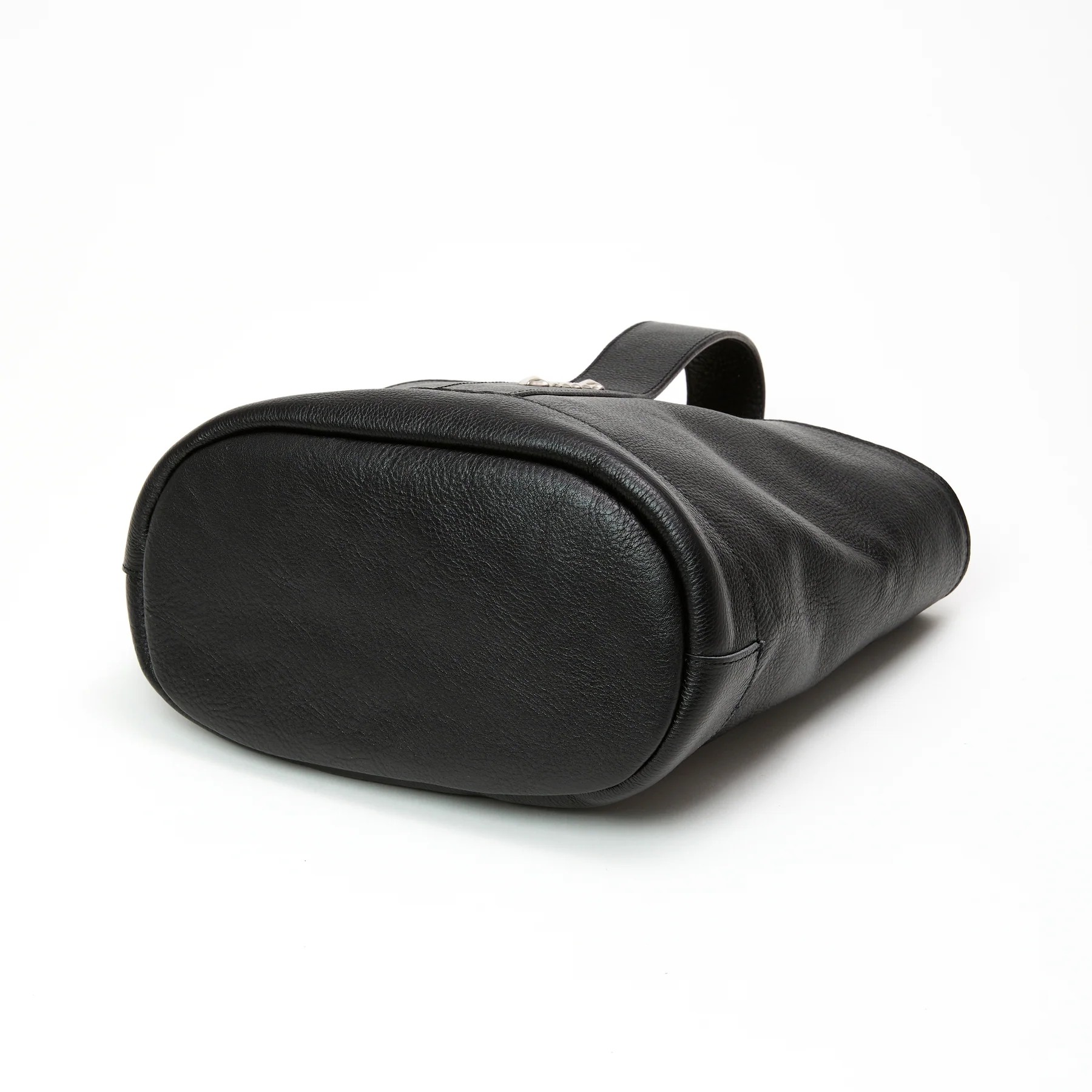 シボ感あるレザーで作製されたバケットバッグ。
