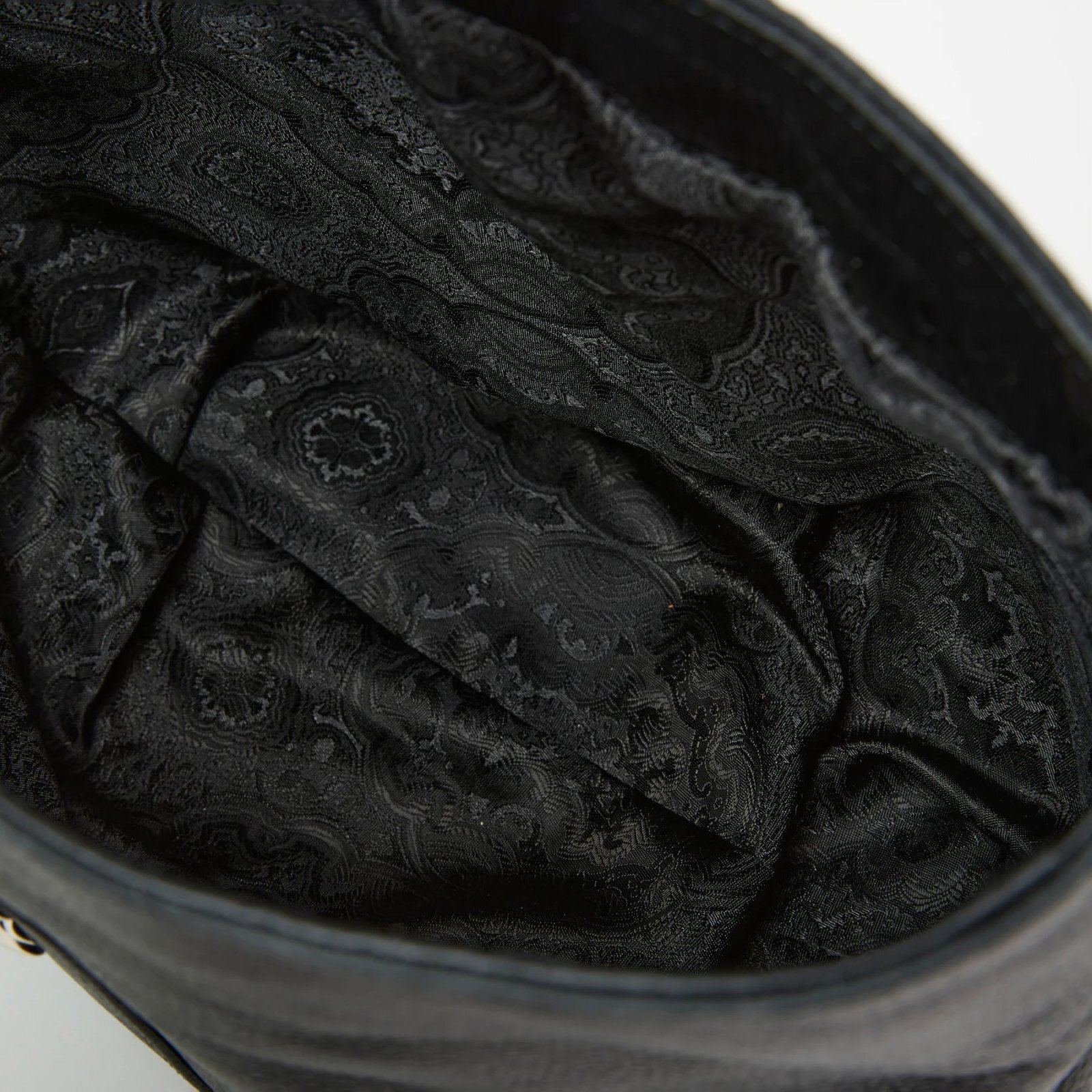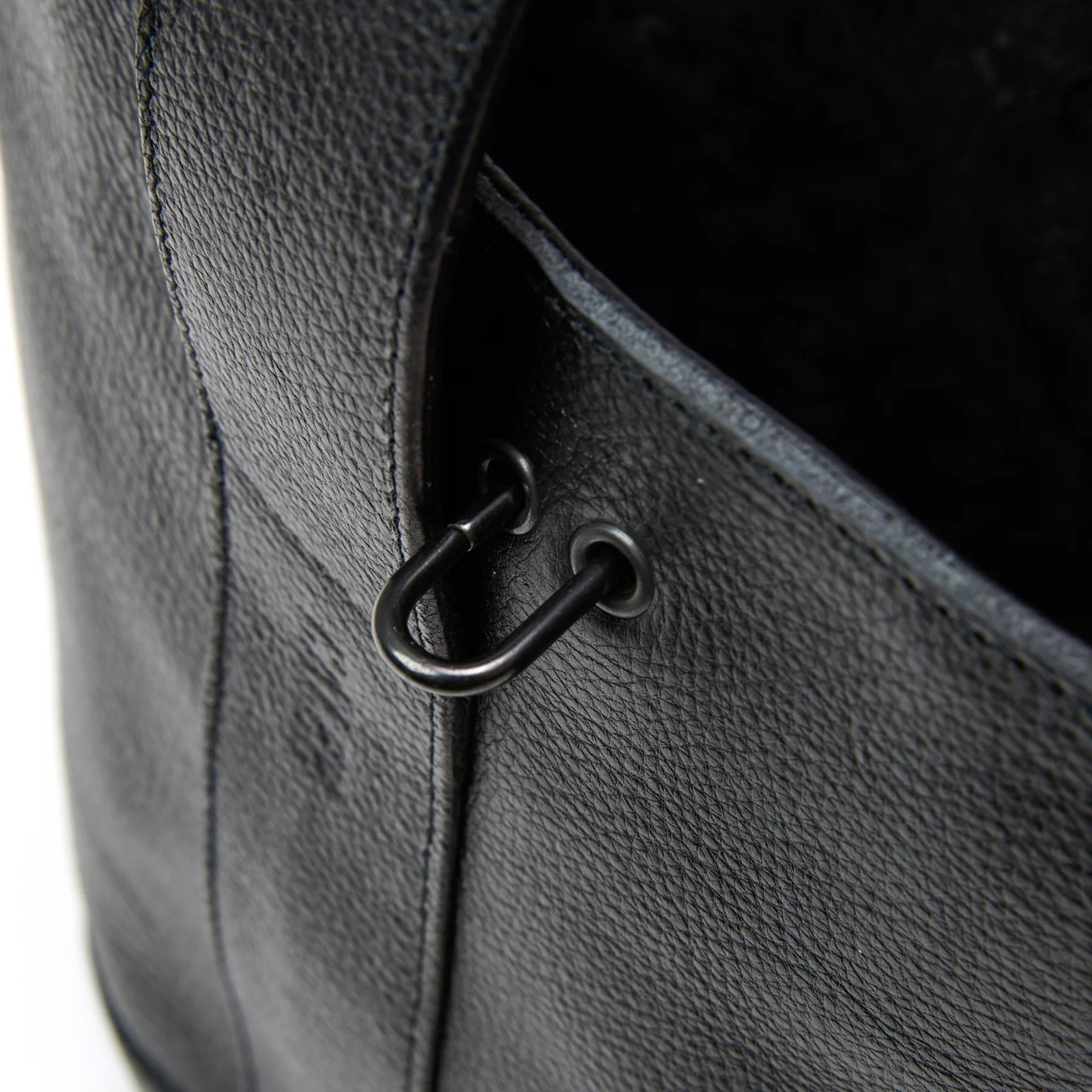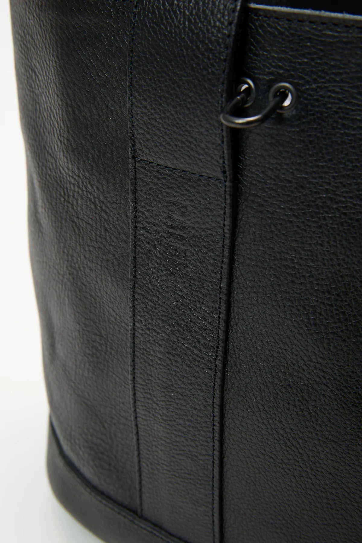 シボ感あるレザーで作製されたバケットバッグ。