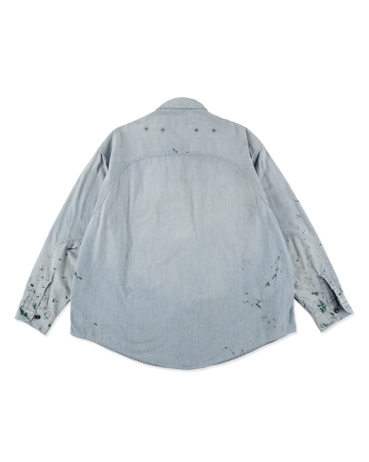 PAINT STAINED CHAMBRAY SHIRT, VENT HOLES [BW252-PSCSV]