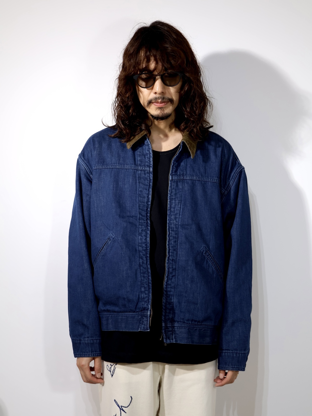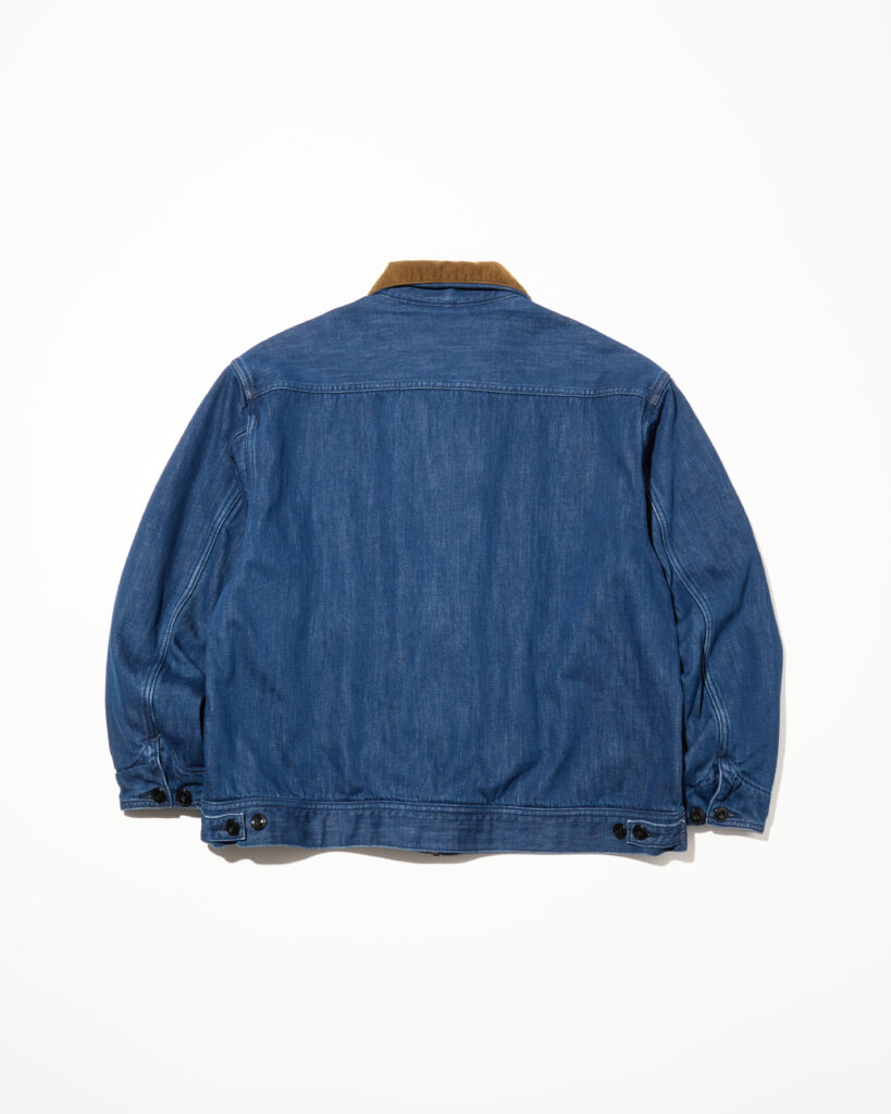 表地にデニム、襟にコーデュロイ、裏地にメキシカンジャガード生地を使用。