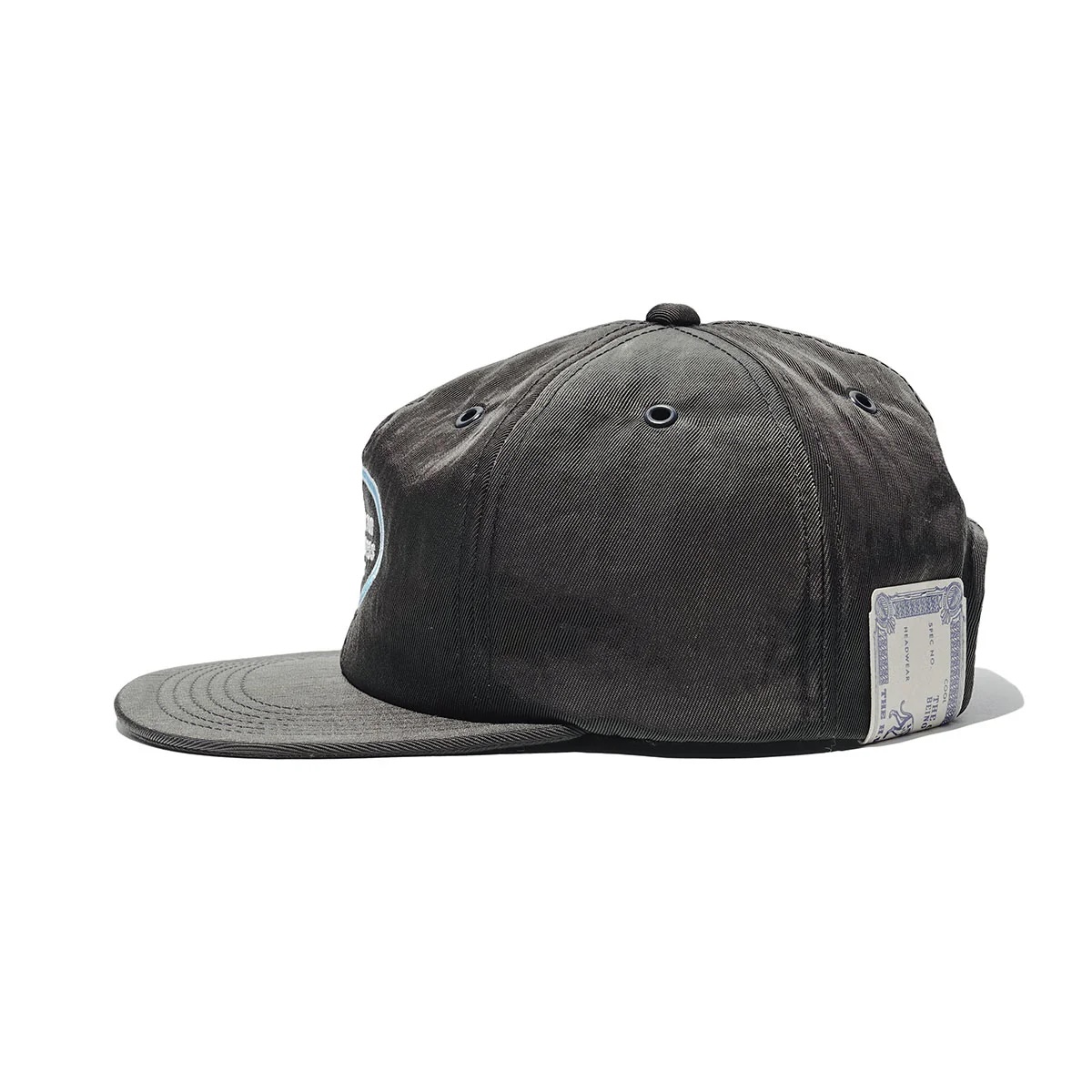 ロークラウンの6パネルにフラットブリムを合わせたスケートスタイルなキャップ。
