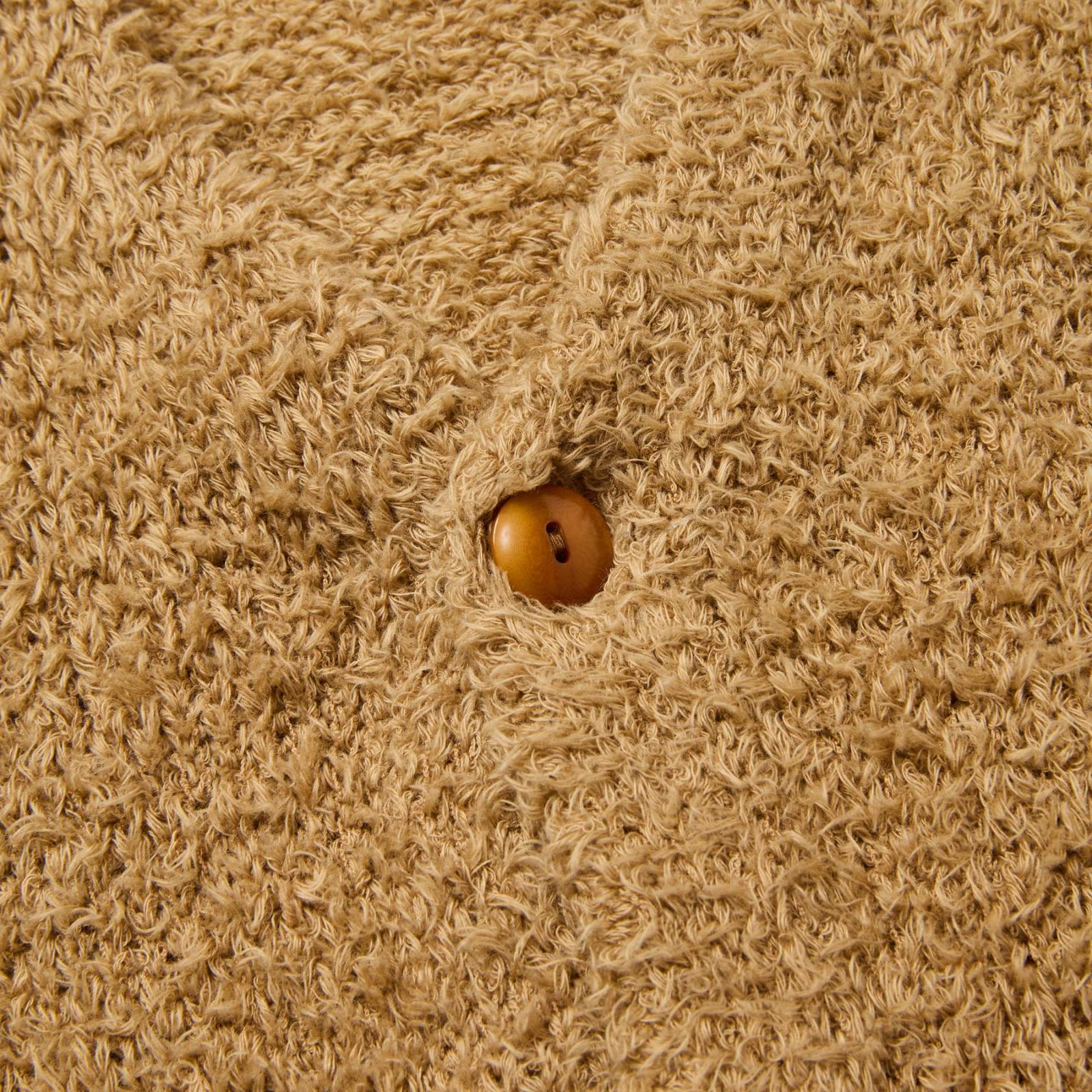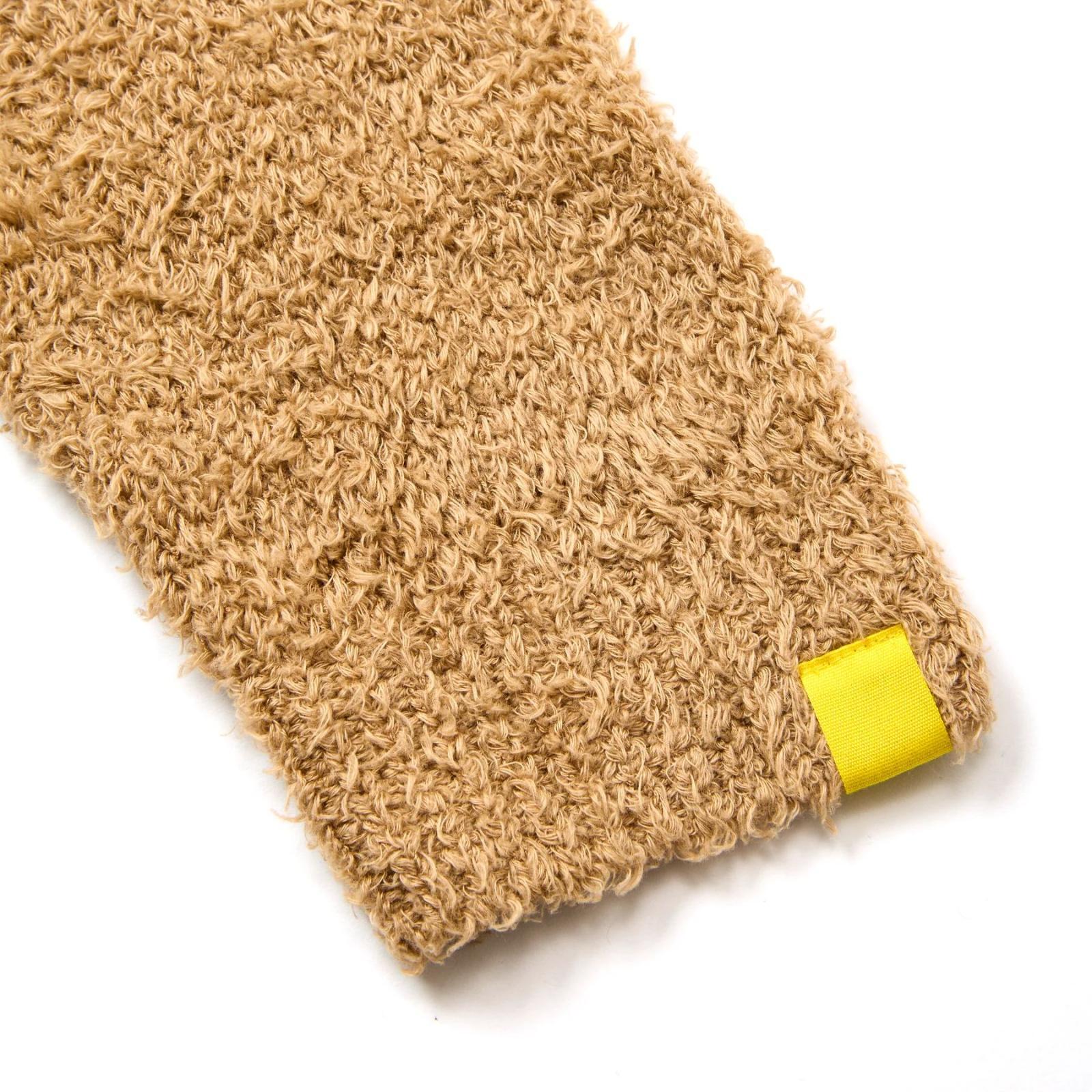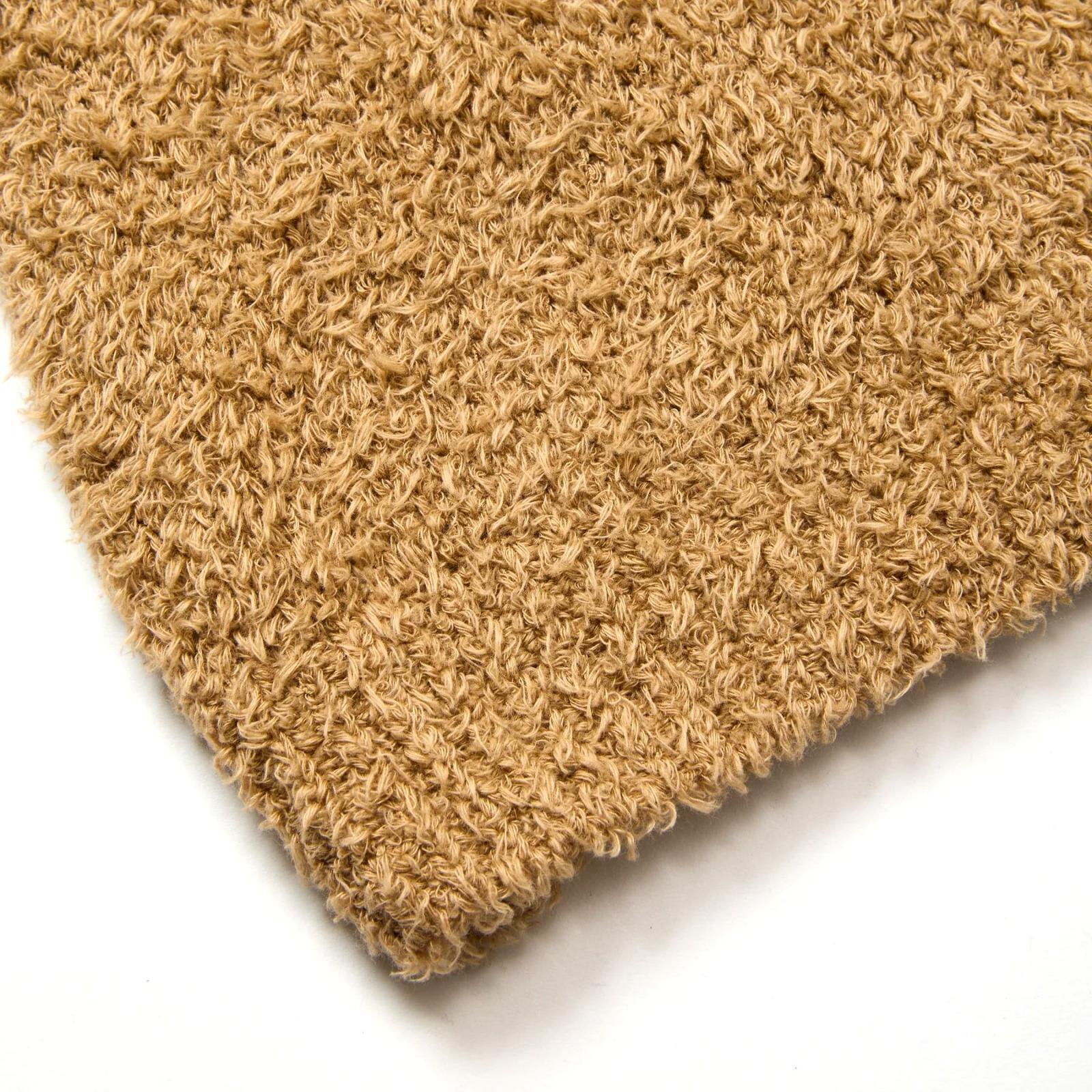 コットンナイロンの糸を5ゲージで編み立て、フリースの素材感、シャギーの様な起毛感を表現。