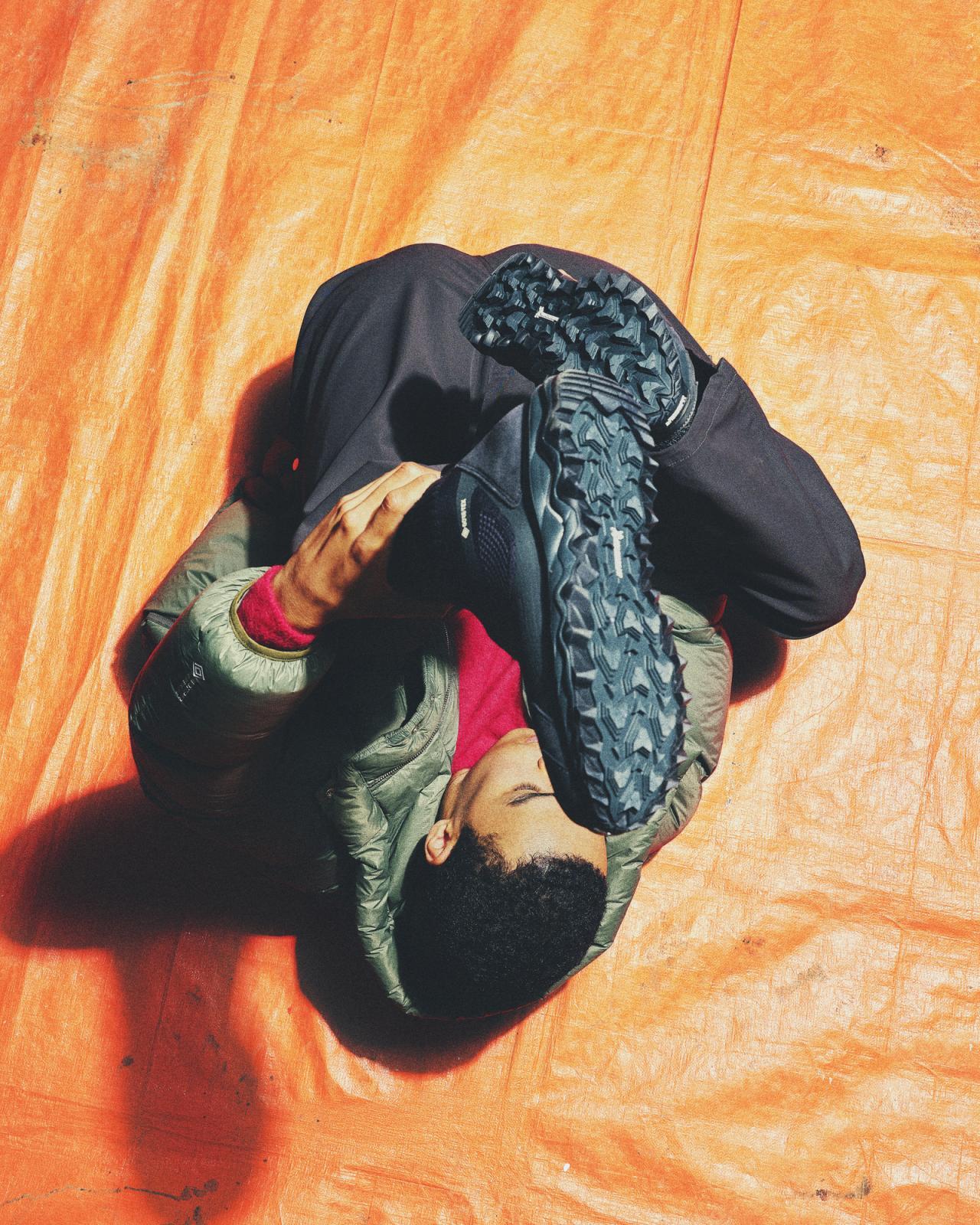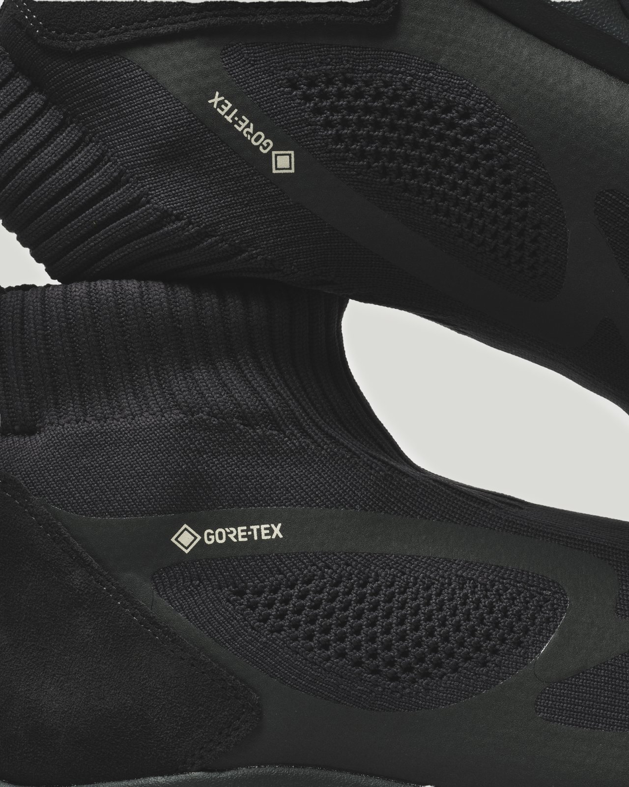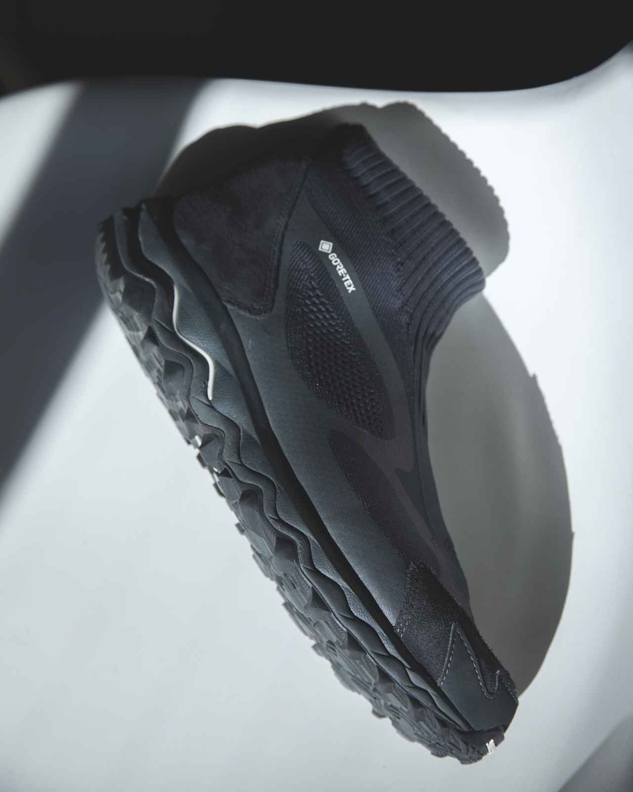 〈GORE-TEX〉プロダクトの防水透湿性能を備えながら、ニット素材特有の伸縮性があり着脱も容易なアッパー。