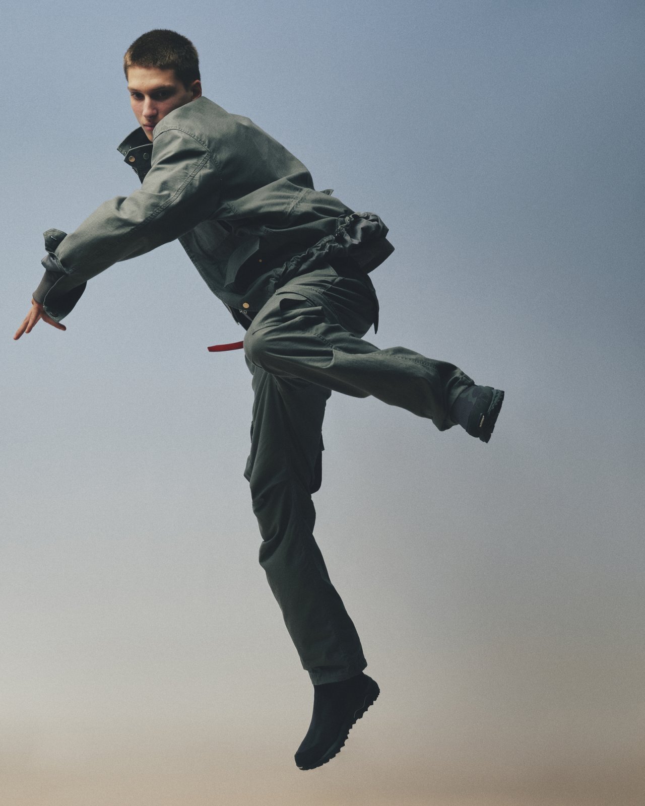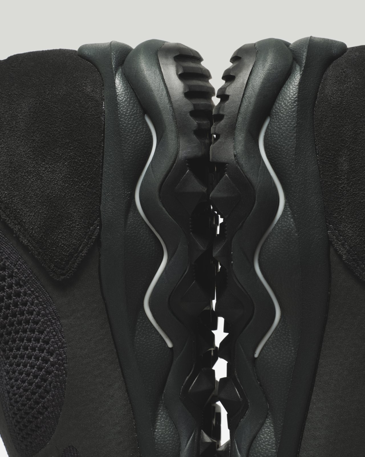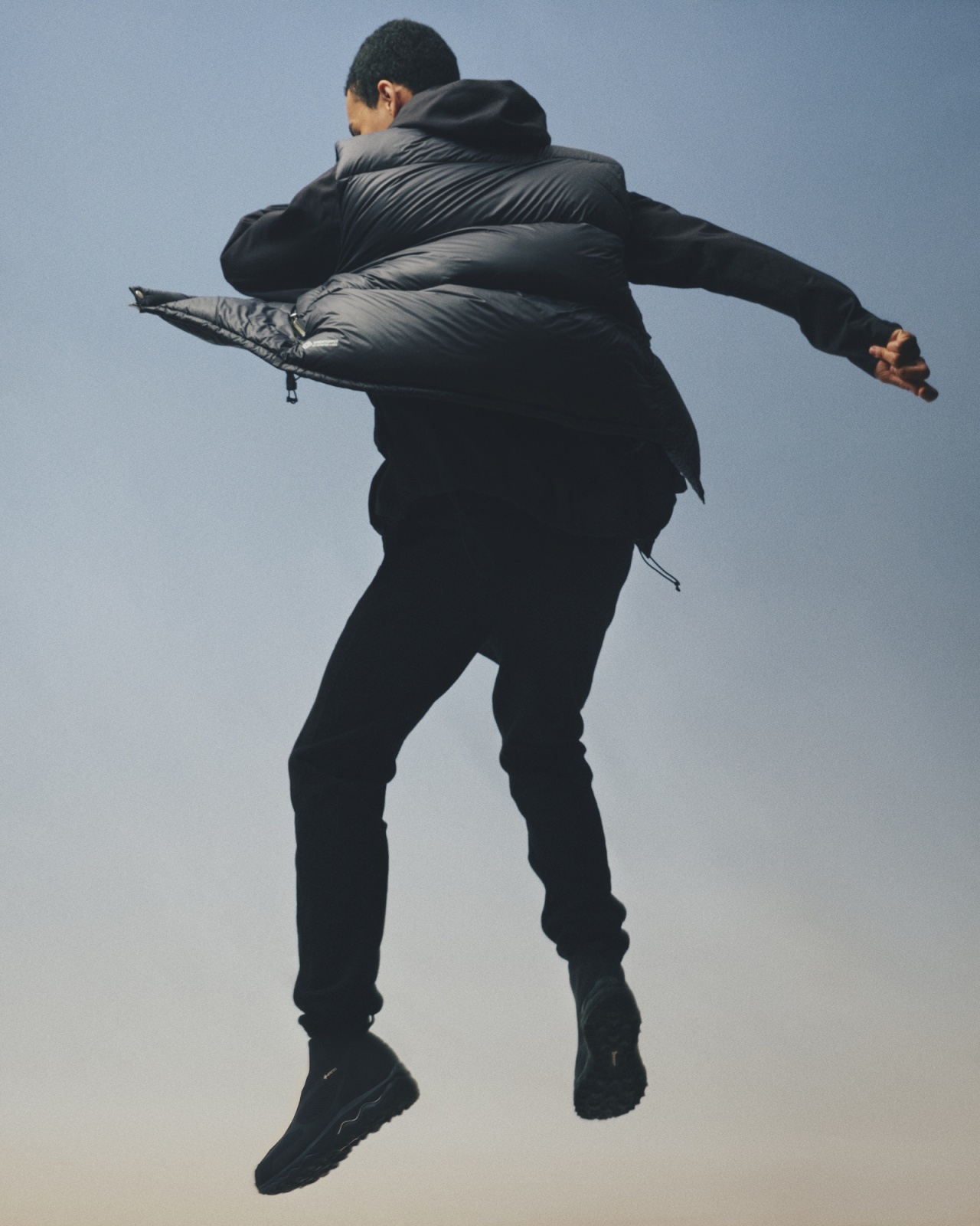 ワントーンを基調としながらも、スウェード、ニット、オーバーレイ、ソールユニットといった全てのマテリアルの色調に変化を与えることで、モノトーンながら繊細なニュアンスをグラデーションで表現。