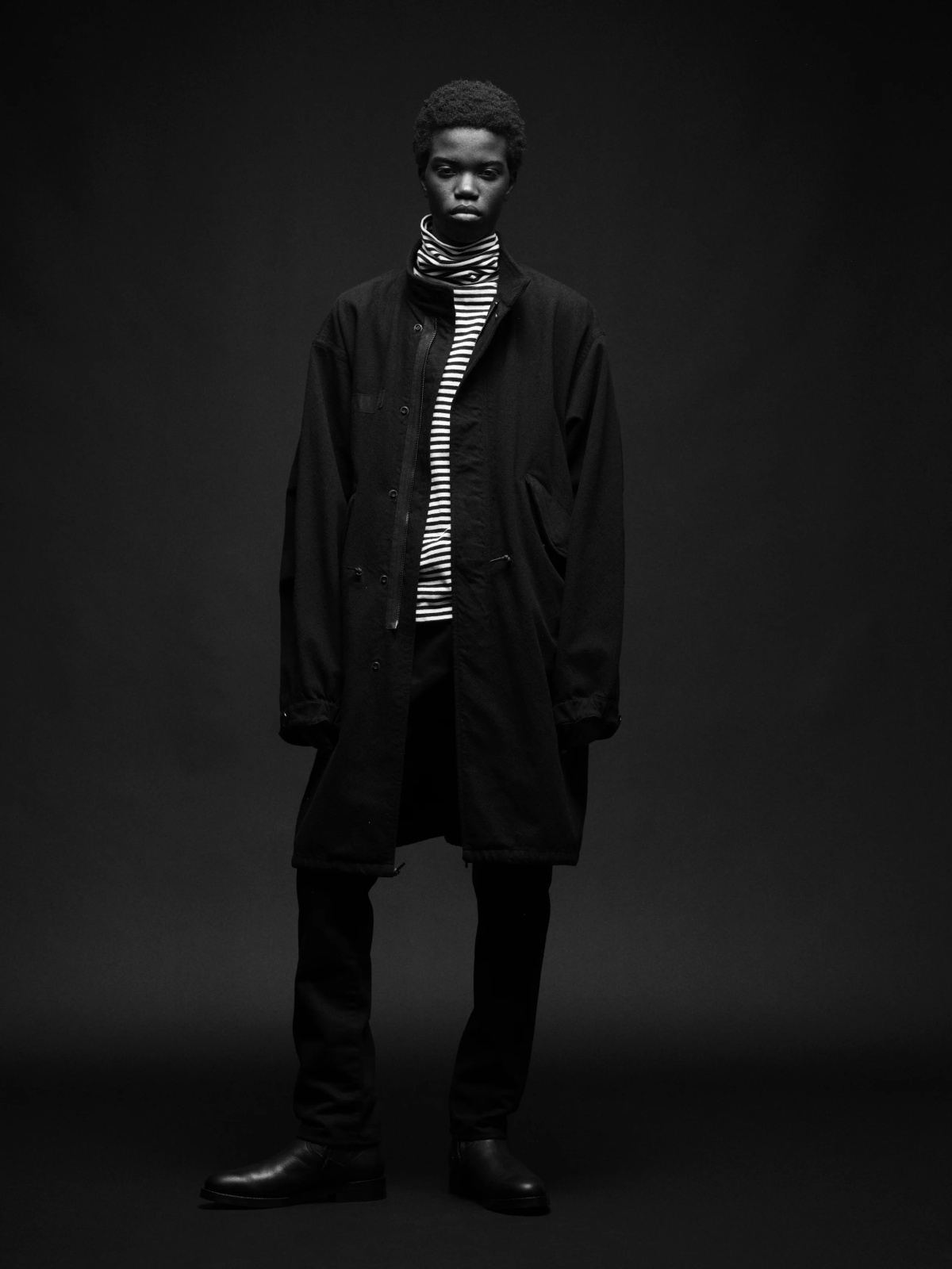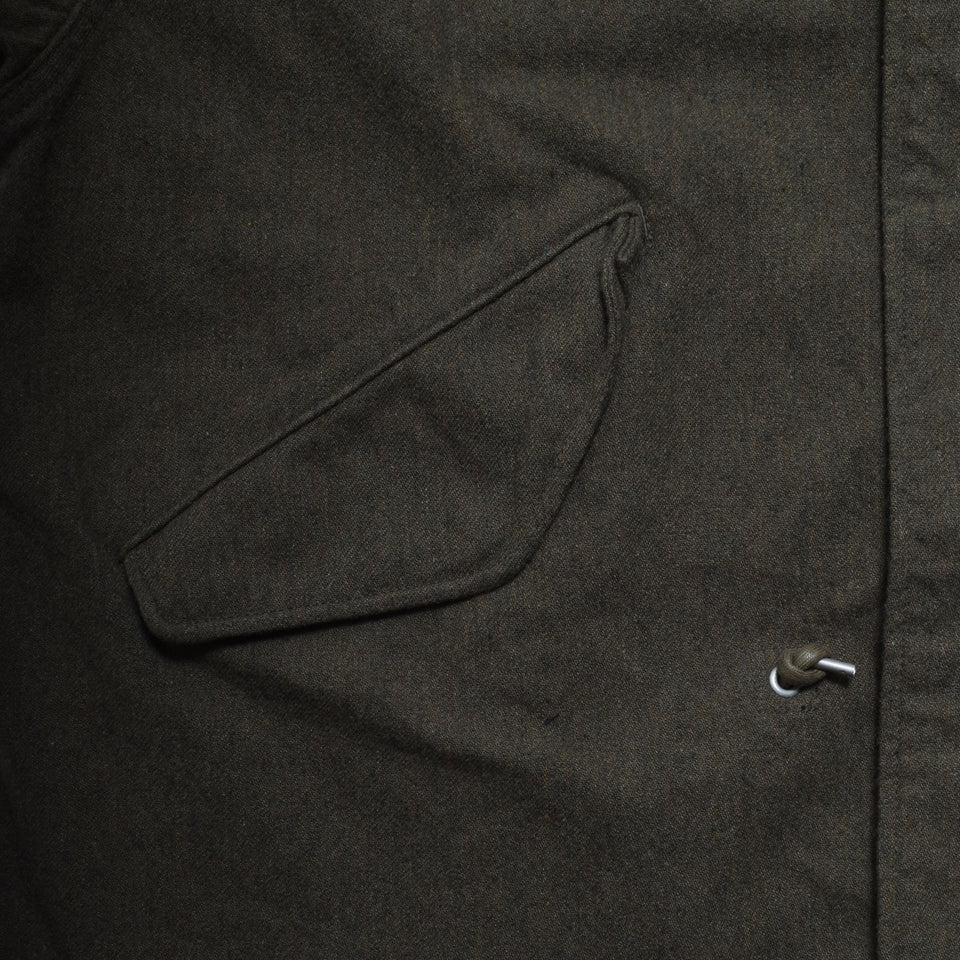 1960年代に開発されたオリジナルのフィールドコートを忠実に再現しつつ、ライニングは排除し、特徴のひとつであるフィッシュテイルもフラットにしたパターンを作成。