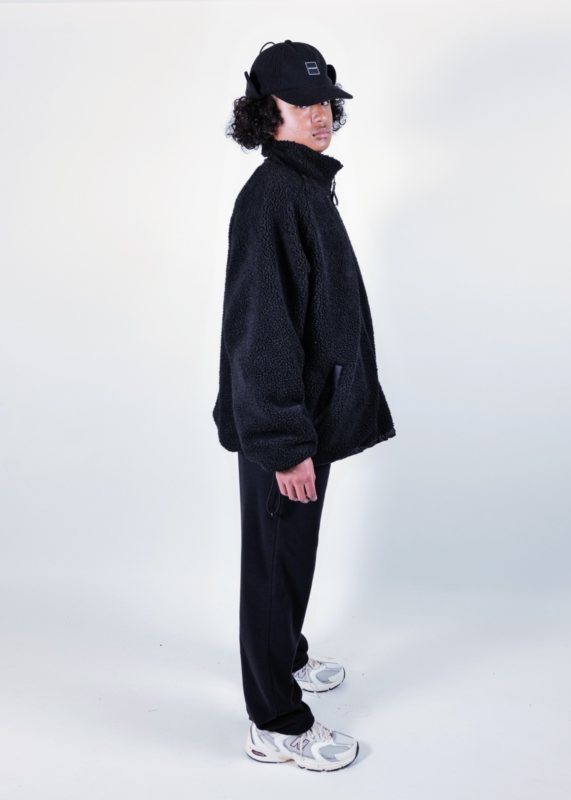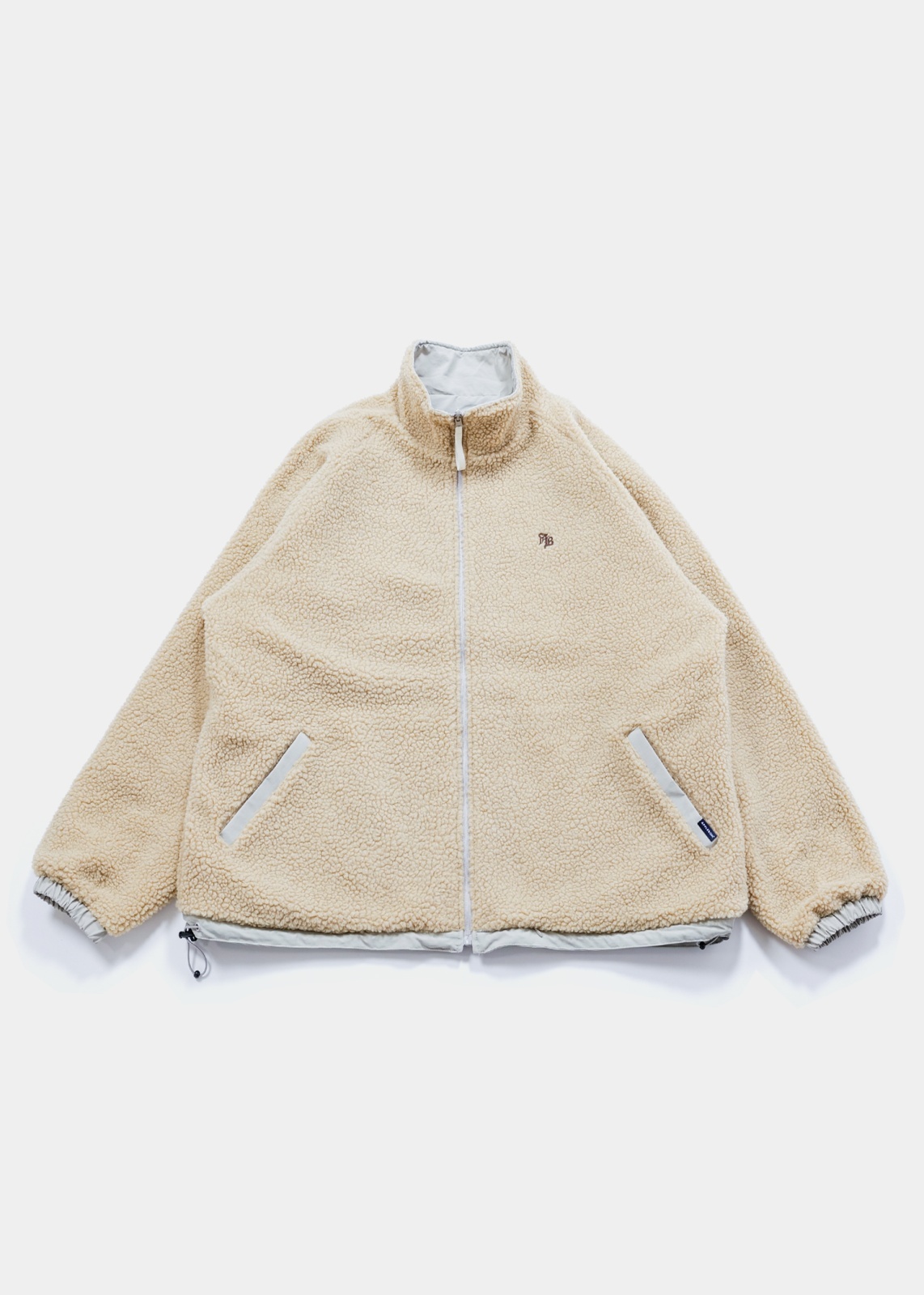ボアフリースとマットな質感のポリエステル地を使用したリバーシブルジャケット。
