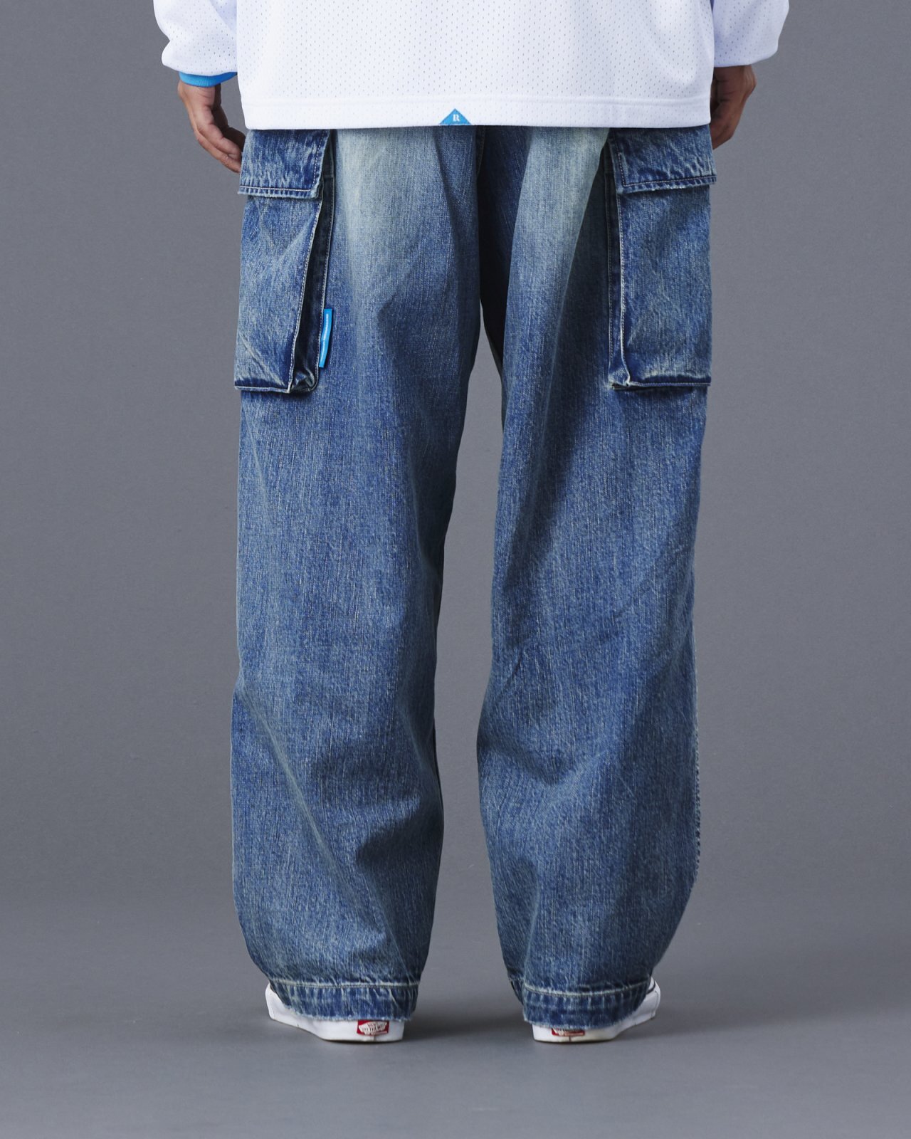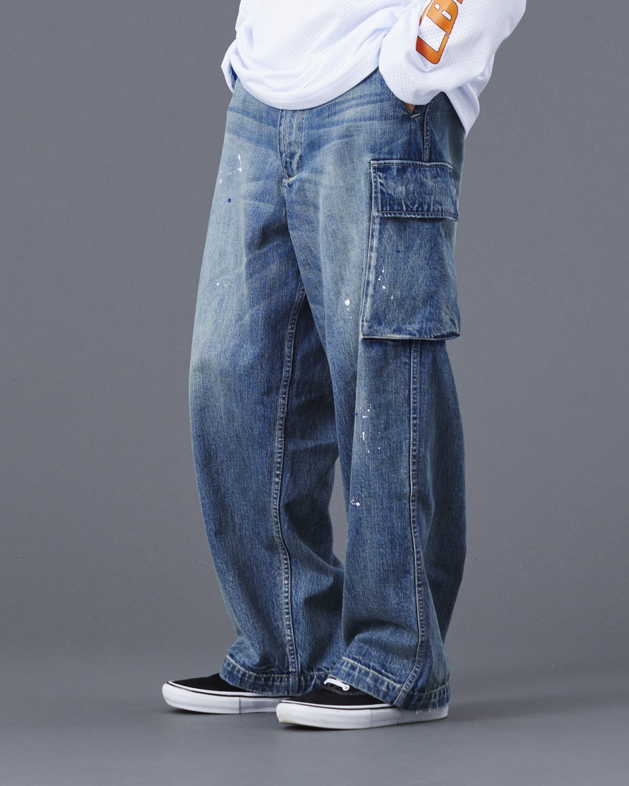 11.5oz のスラブデニムをヴィンテージ加工したカーゴパンツ。