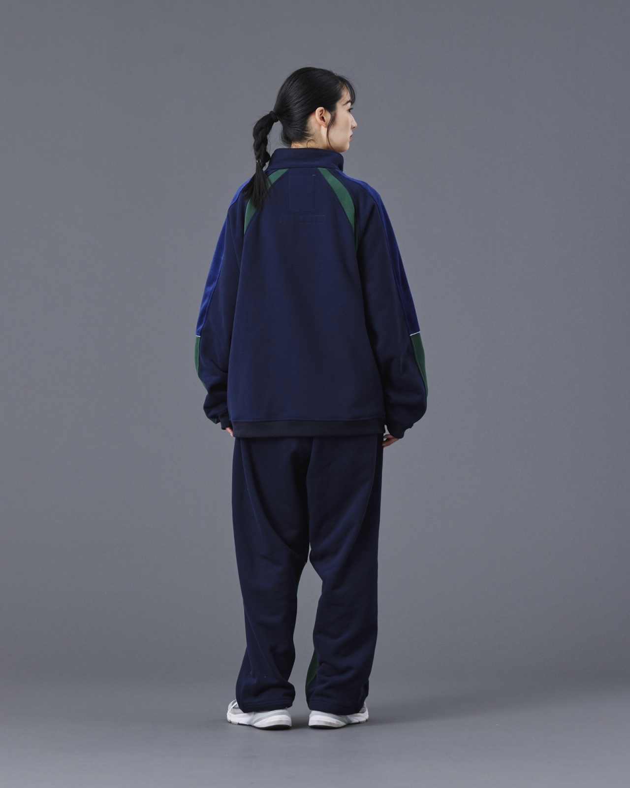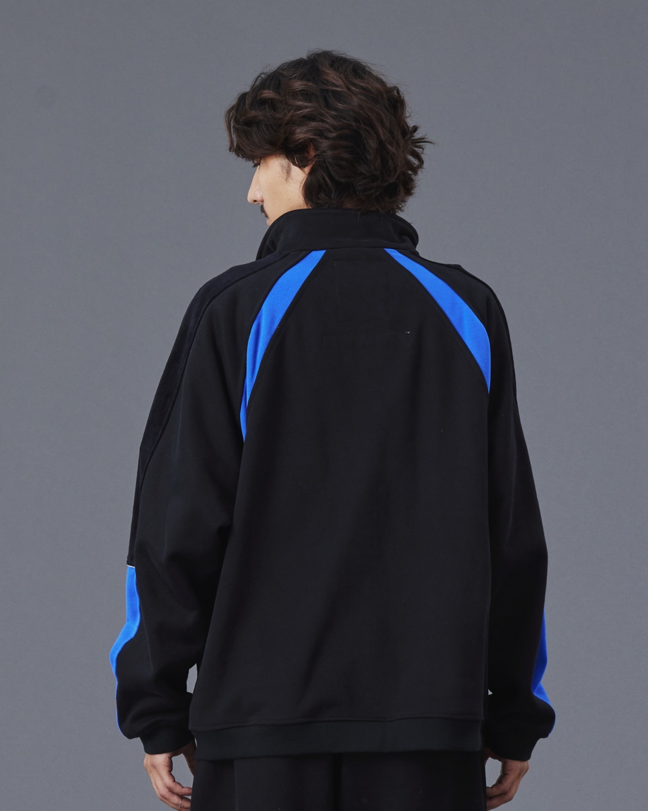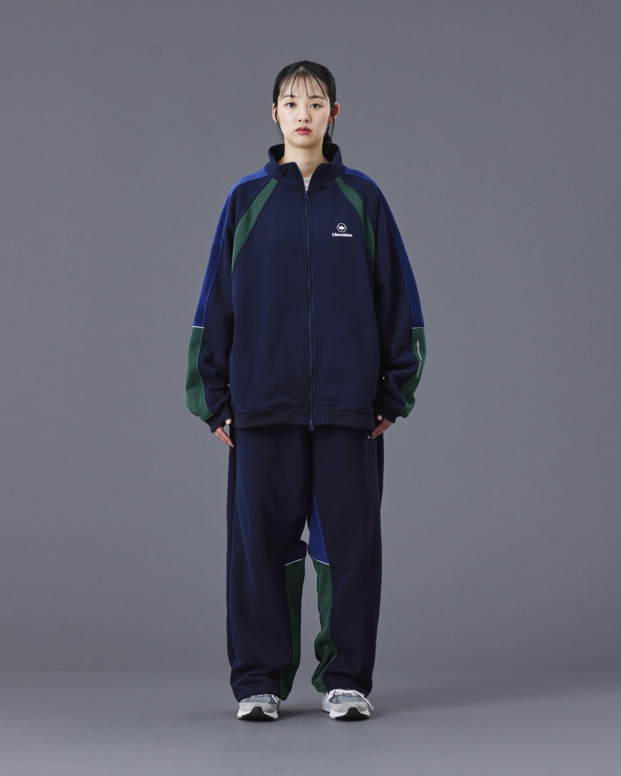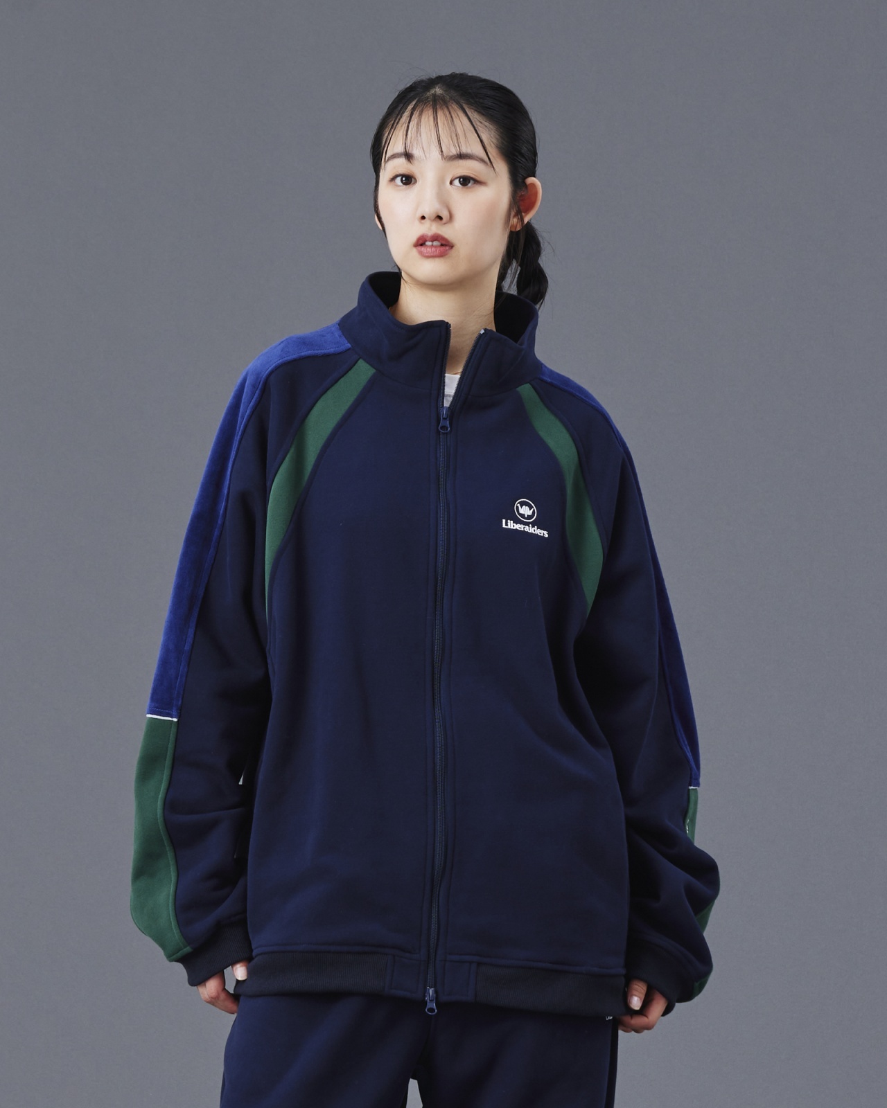 裏がマイクロボアのようになっている特殊な裏起毛を用いたトラックジャケット 2 トーンカラー配色でレトロなスポーツ感を醸し出しています。