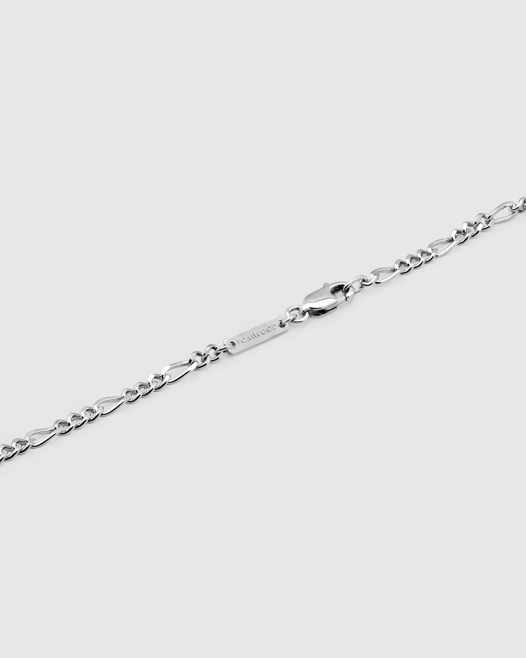 It combines small round curves with elongated oval curves, and next to a classical lobster clasp, it features Tom Wood's signature bar.