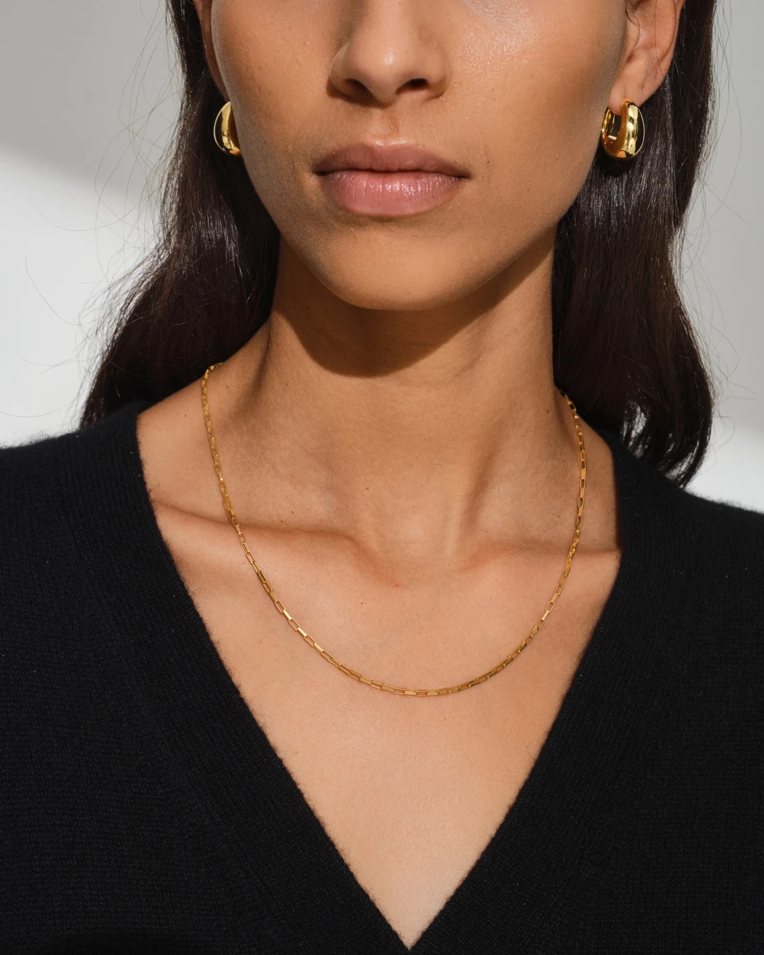 小さなスクエアカットが軽やかかつ繊細に連なったビリー・チェーンは、モダンでありながらタイムレスなアイテムです。