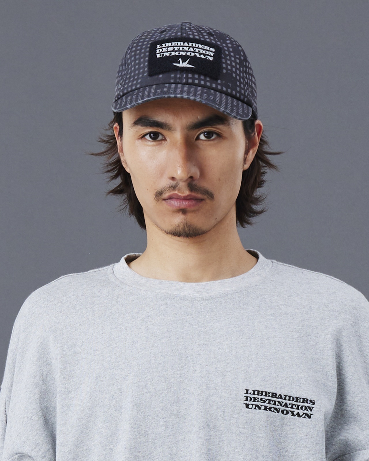 コットンツイルにオリジナルのナイトカモをプリントした6パネルキャップ。