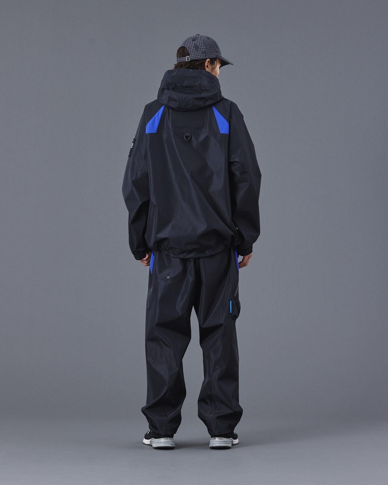 同素材のジャケットとセットアップで着用すれば雨の日やアウトドアでも活用できるオールコンディション対応のセットアップとなります。