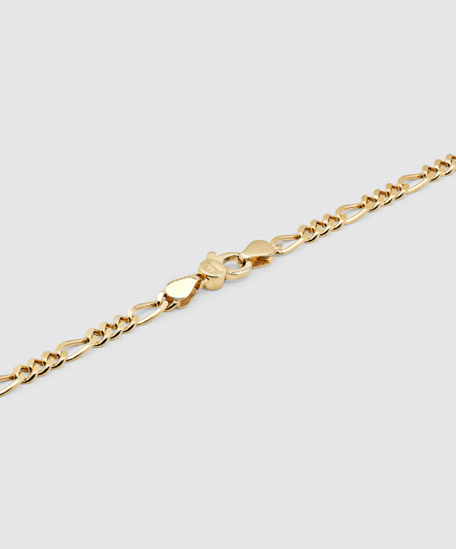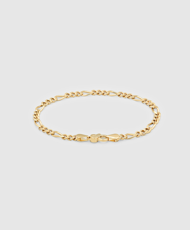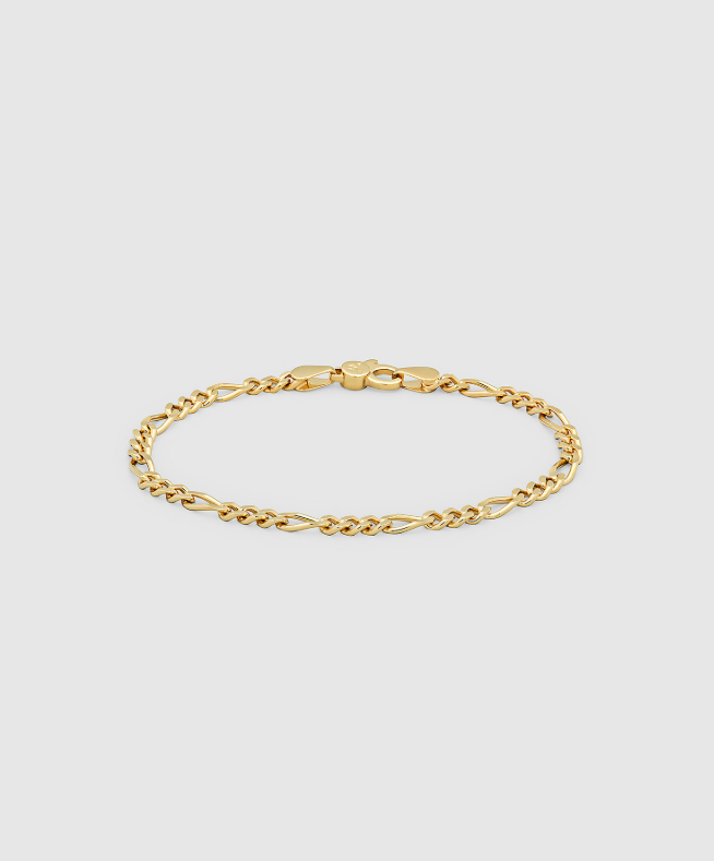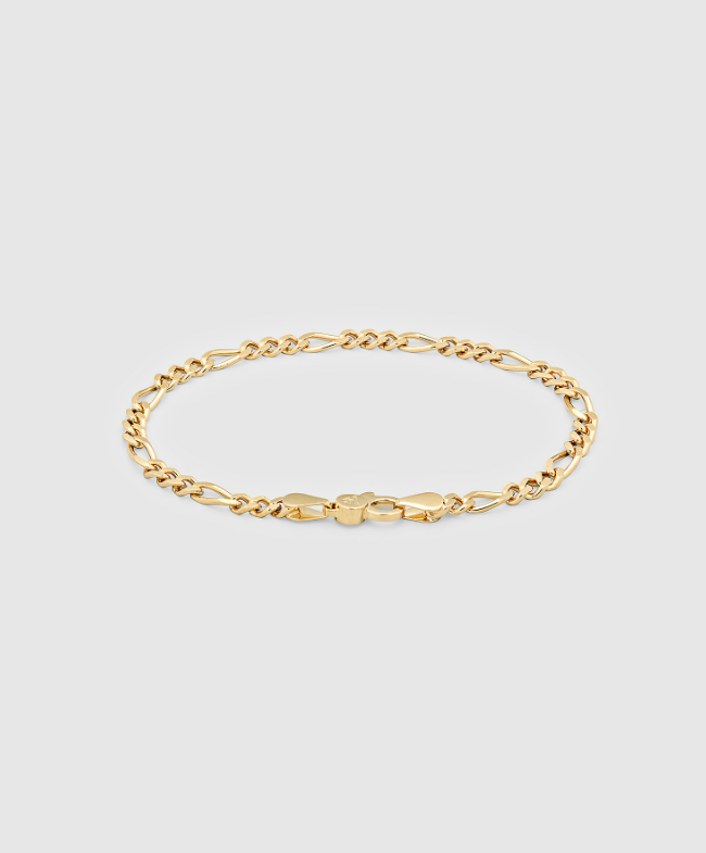 The Bo Bracelet Medium Gold features a timeless Figaro chain design.