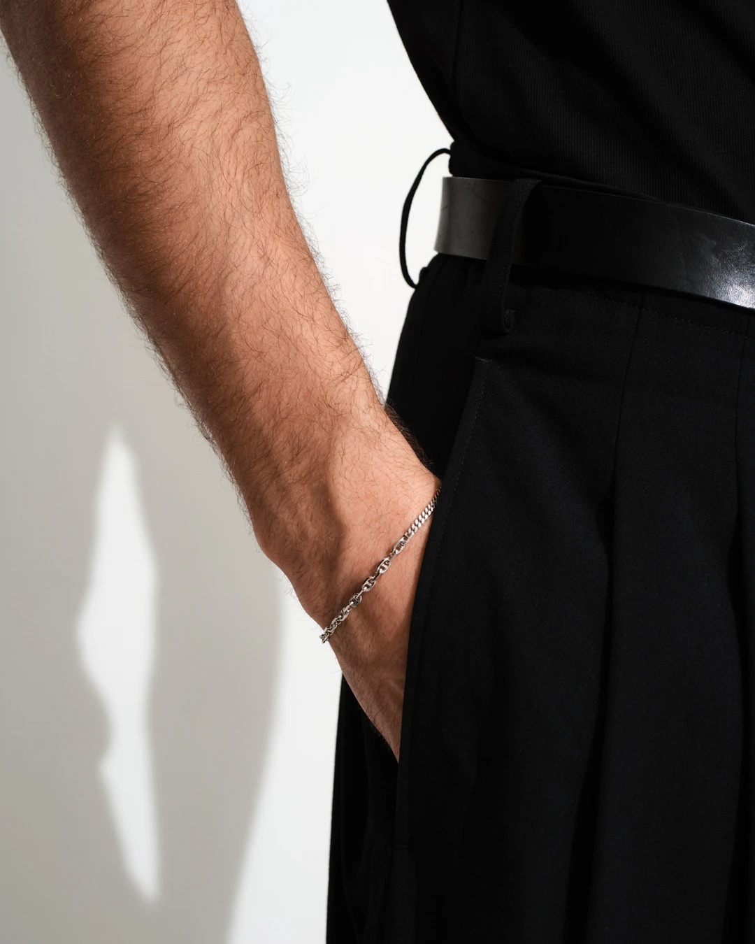 The bracelet is made of polished recycled sterling silver 925 and is coated with recycled white rhodium plating to strengthen the surface and prevent tarnishing.
