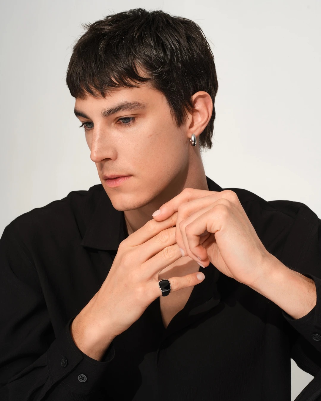 The Cushion Polish Black Onyx is a classic signet ring, carefully handcrafted with a custom-cut polished black onyx set into a smooth bezel.