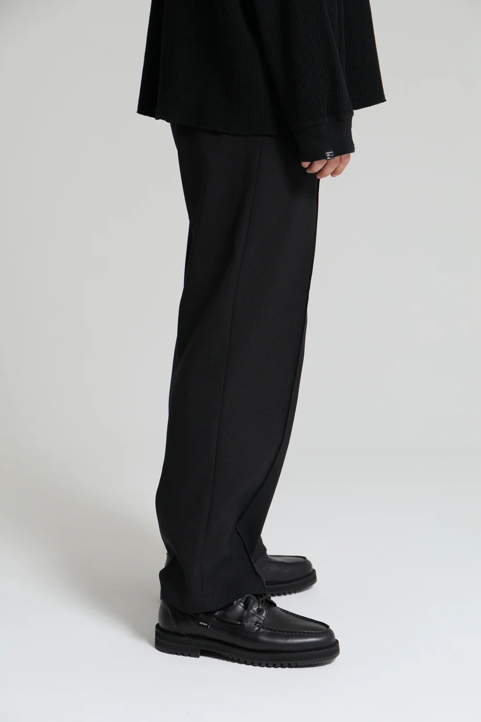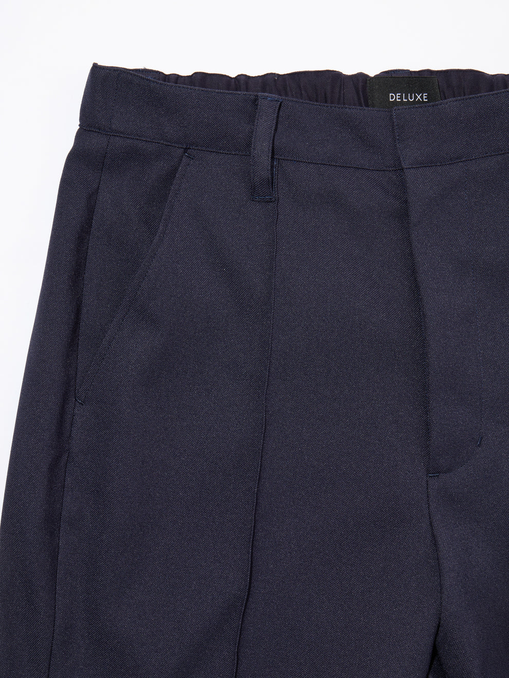 ポリエステル/ポリウレタン混紡のピンタックパン ツ。