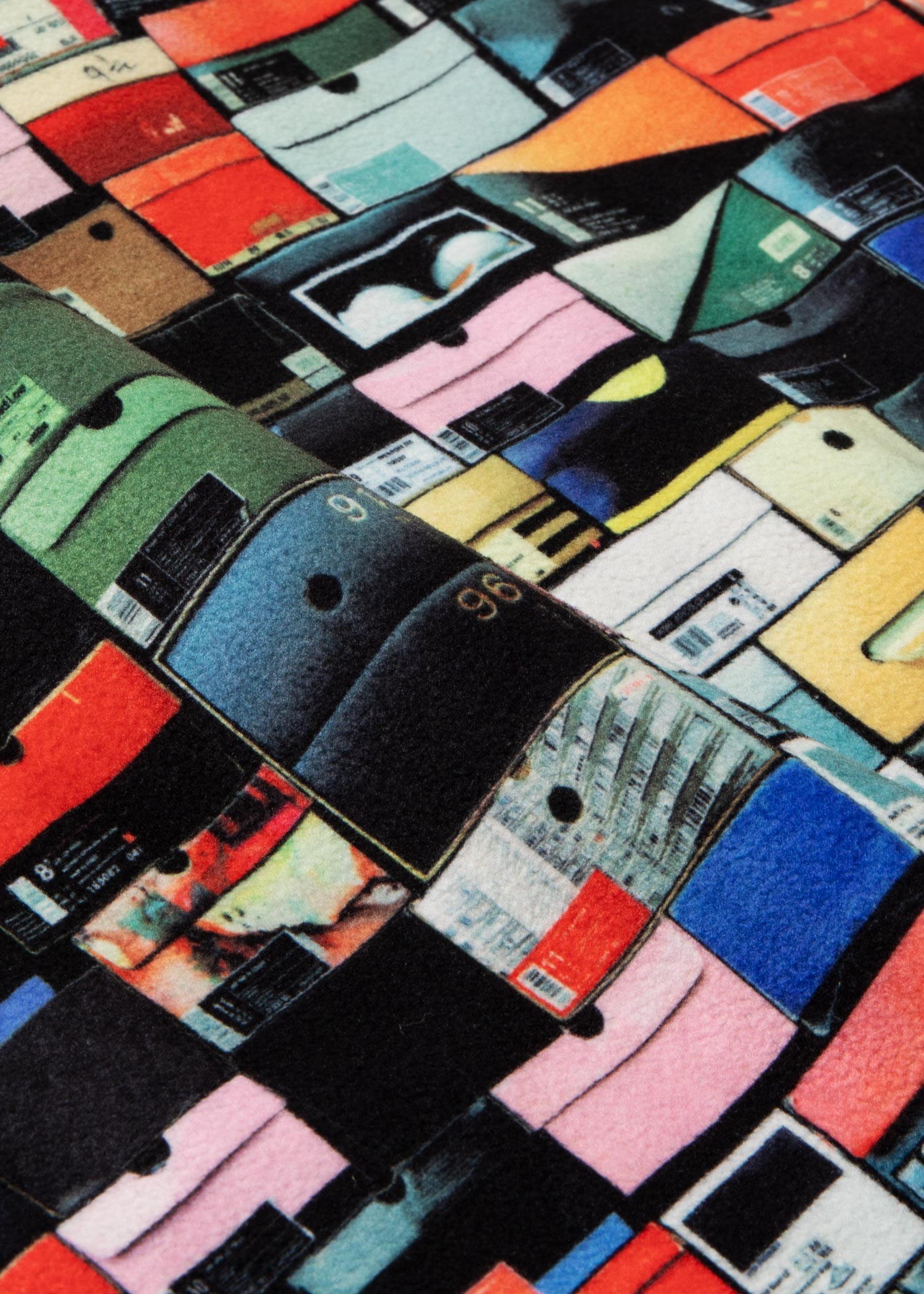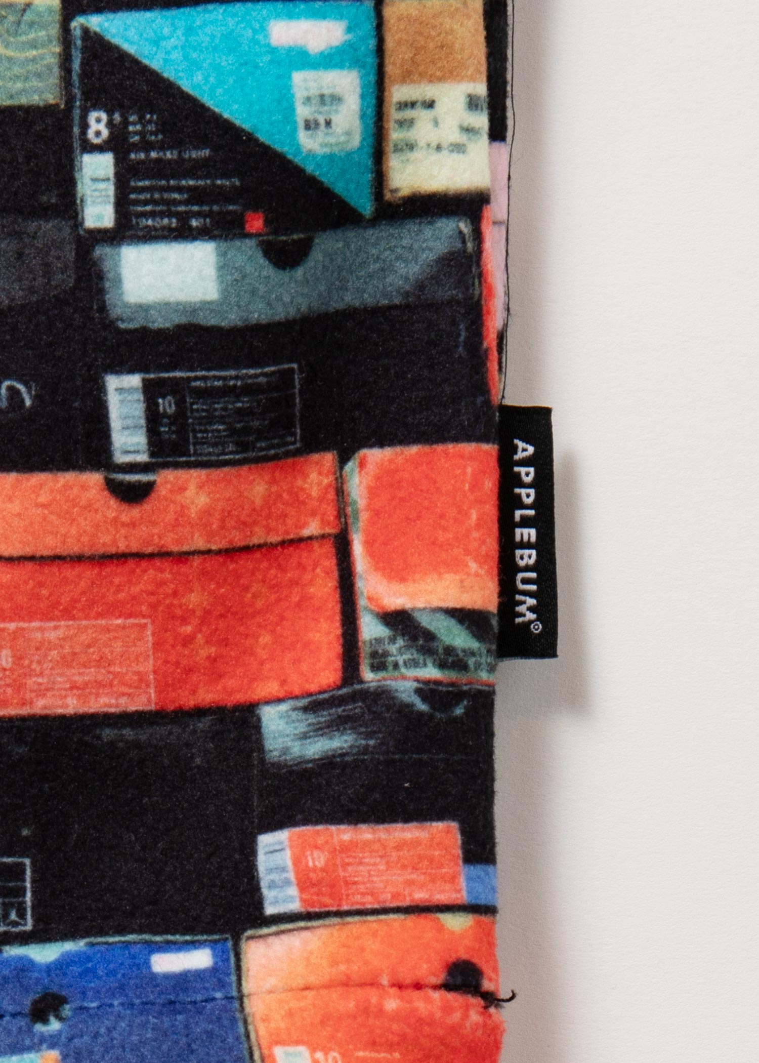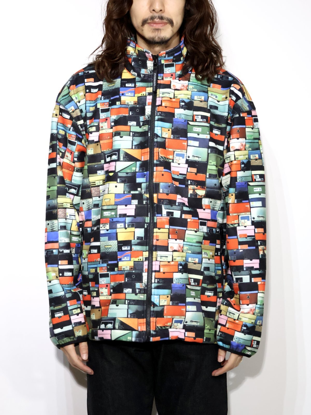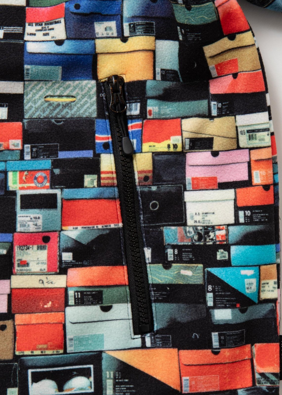 APPLEBUMを代表するグラフィックデザインの一つで、名作と呼ばれるスニーカーボックスを積み重ねた「K.B.A.S.」(Kickz Box All Stars)柄を大胆に落とし込んだフリースジャケット。