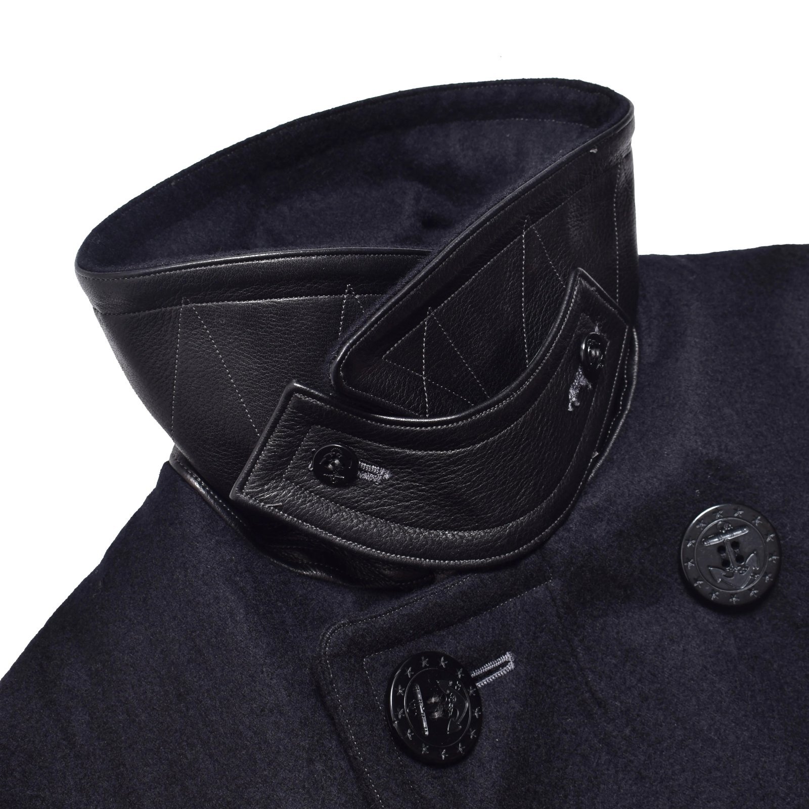 またポケット袋布にはコーデュロイを使用し、縫製糸の色やボタンホールの打ち込みの細かさなど、細部にまでこだわりを詰め込んだ立体的で美しいシルエットのデニムメルトンピーコート。