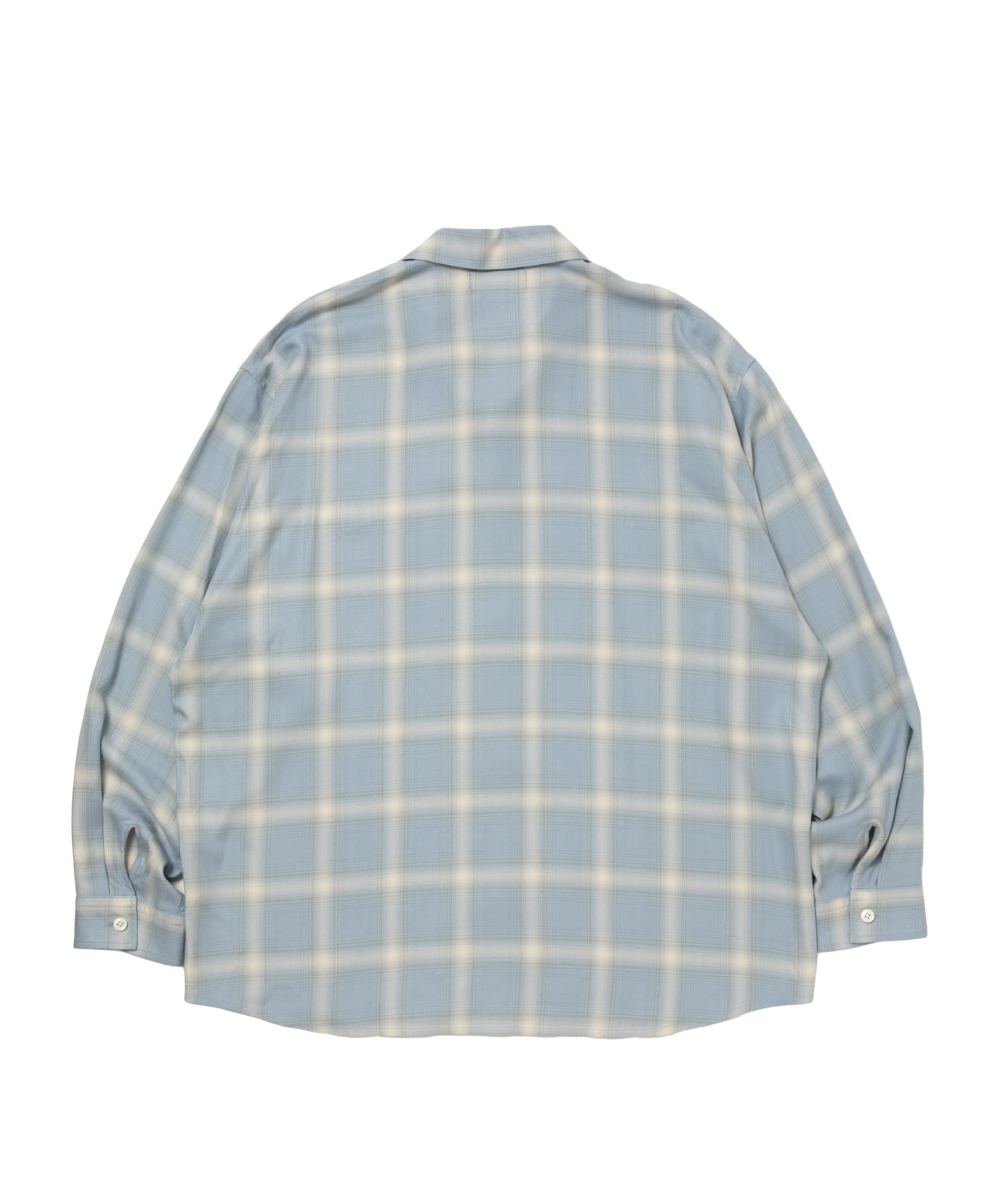 レーヨン100%のオンブレチェック柄素材を使用した オープンカラーシャツです。