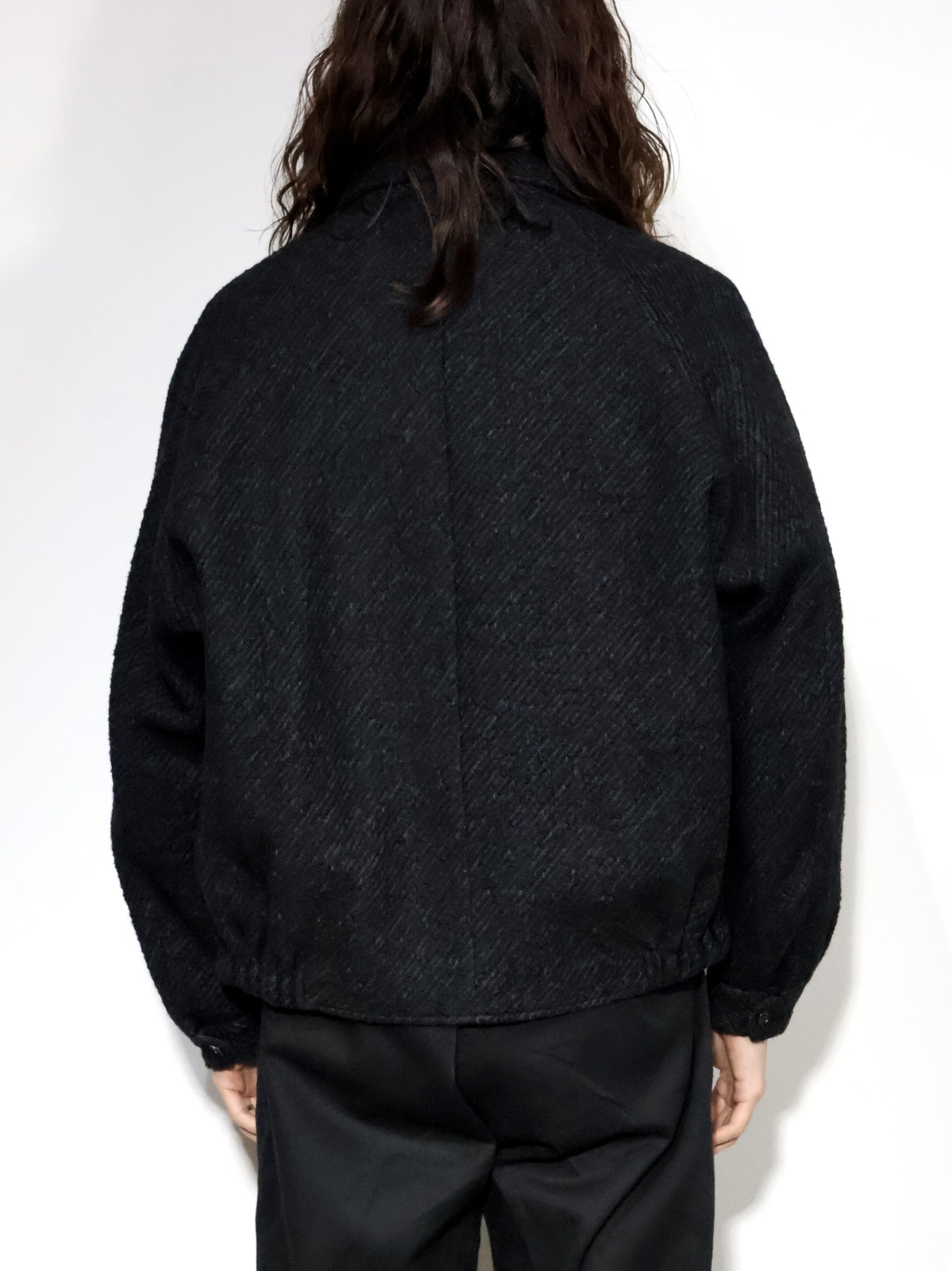埃除けの用でデザインされたユニークな襟、大きくゆとりを入れたスリーブラインと下のマチ、ライニングに直にアクセスできるポケットなど、古き良き意匠設計が盛り込まれたハリントンタイプのショートジャケット。