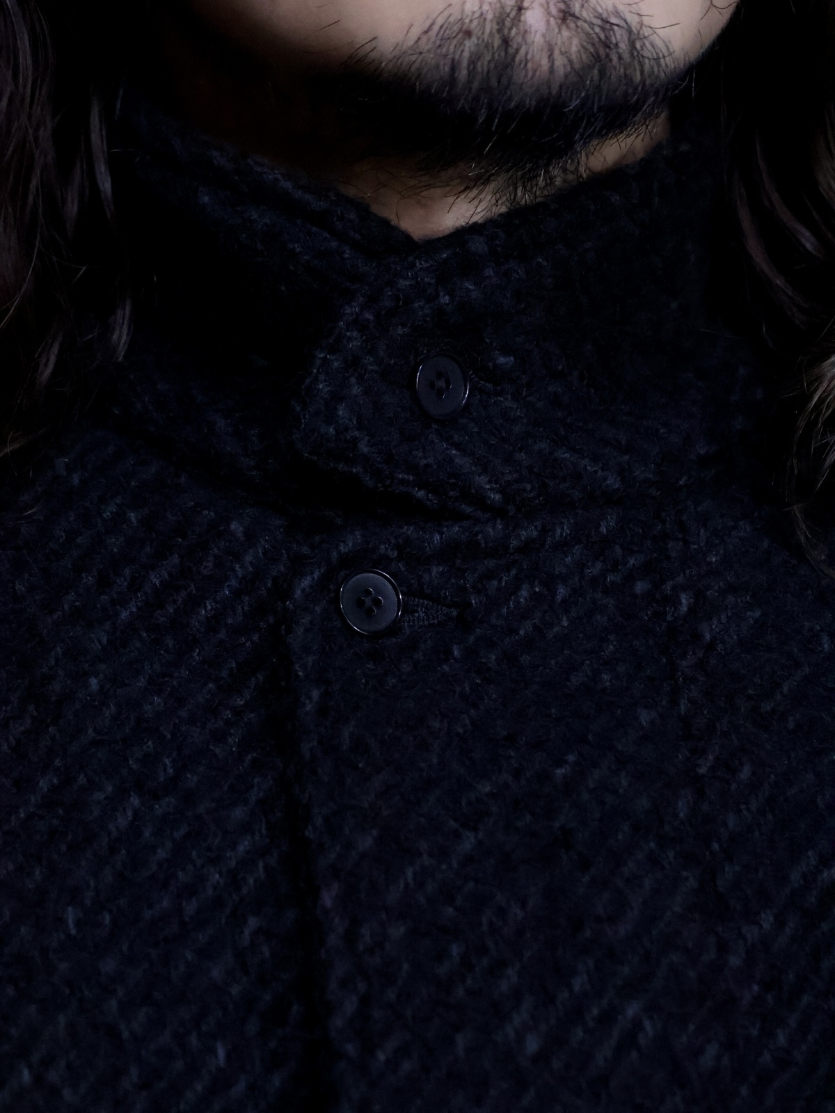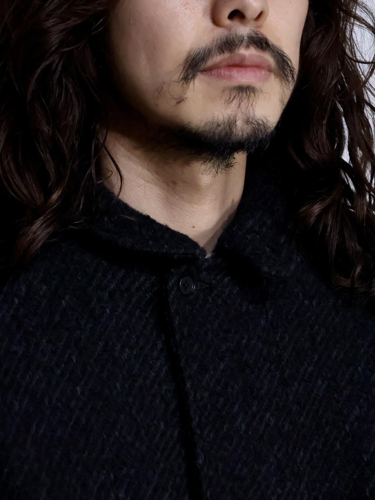 また古き良き時代を彷彿させるかのようなクラシカルなまいを持つざっくり編みの太番手へリンボーンが目を引く。