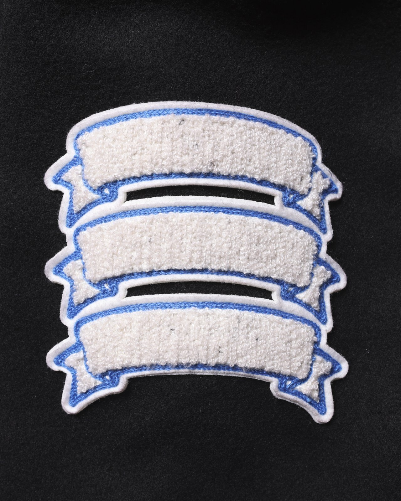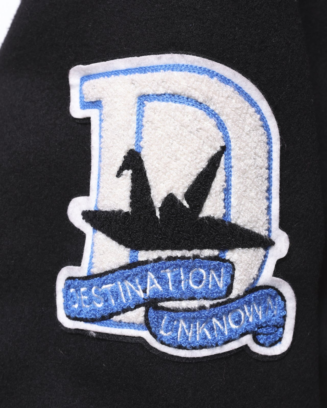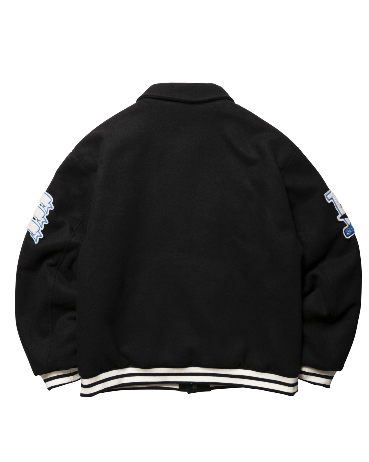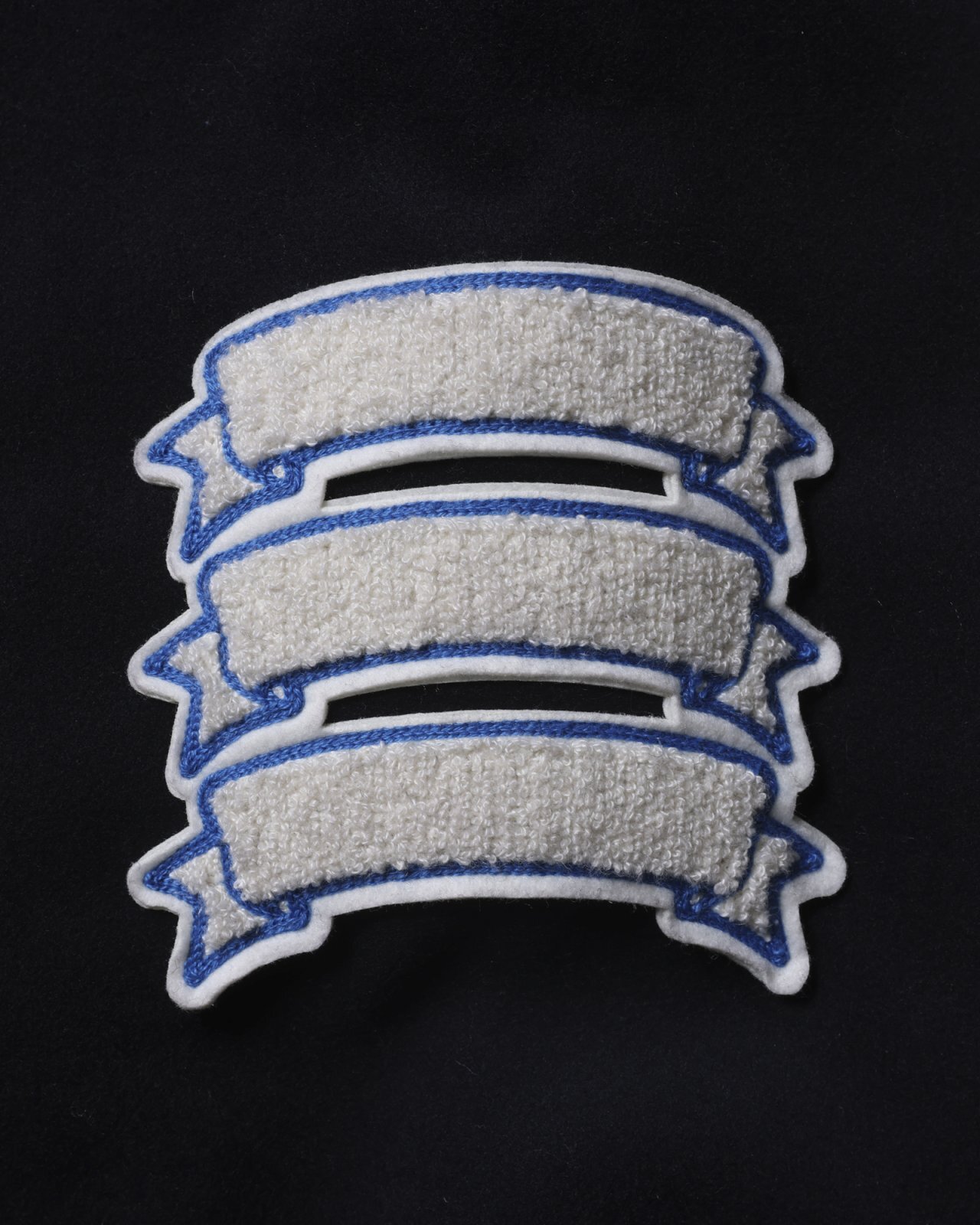 随所に帆施されたワッペンやチェーン刺繍等、本格的な仕様のヴァ―シティジャケットに仕上げています。