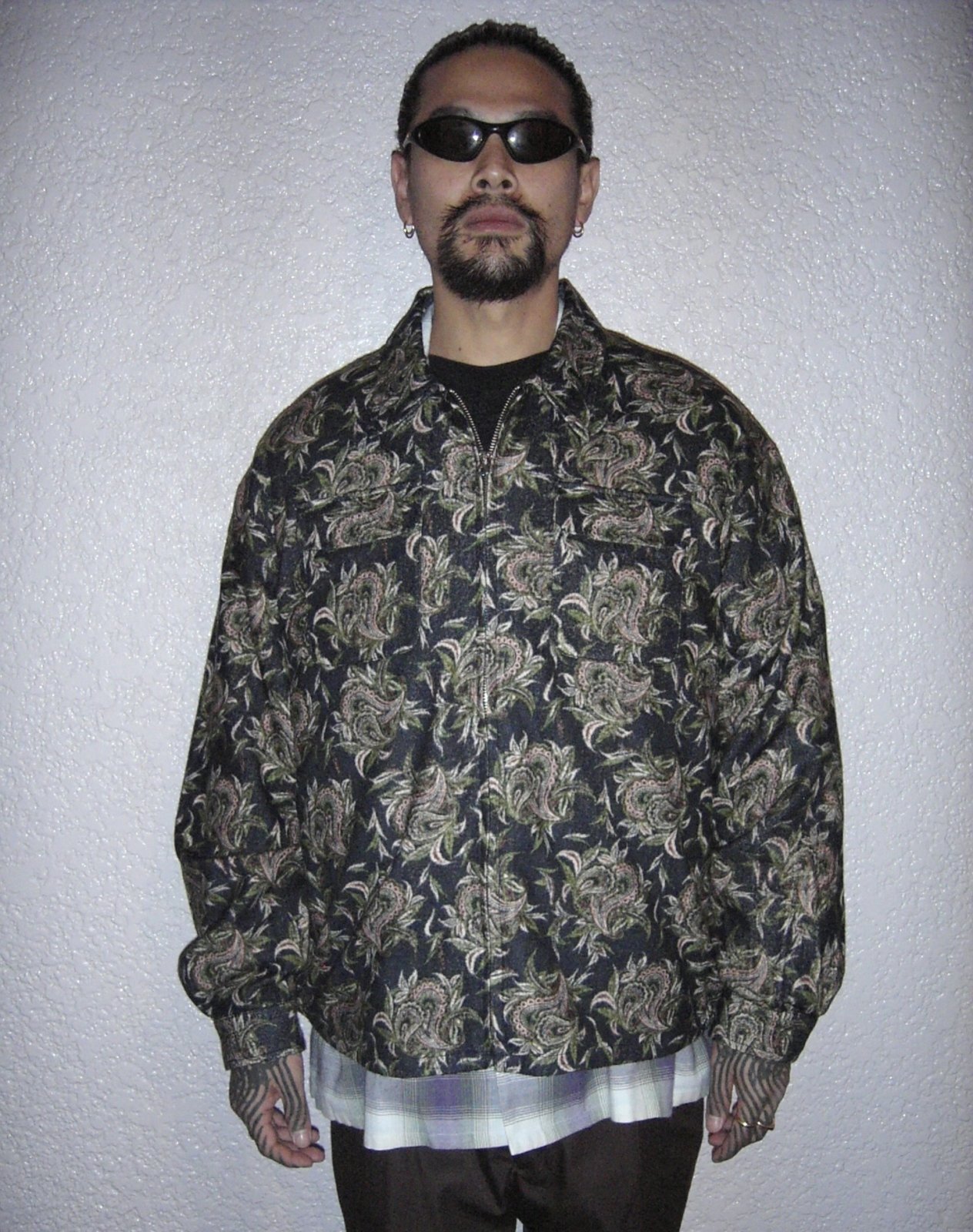 オリジナルのバッズペイズリー柄のレーヨン/コットン生地のスウィングトップジャケット。