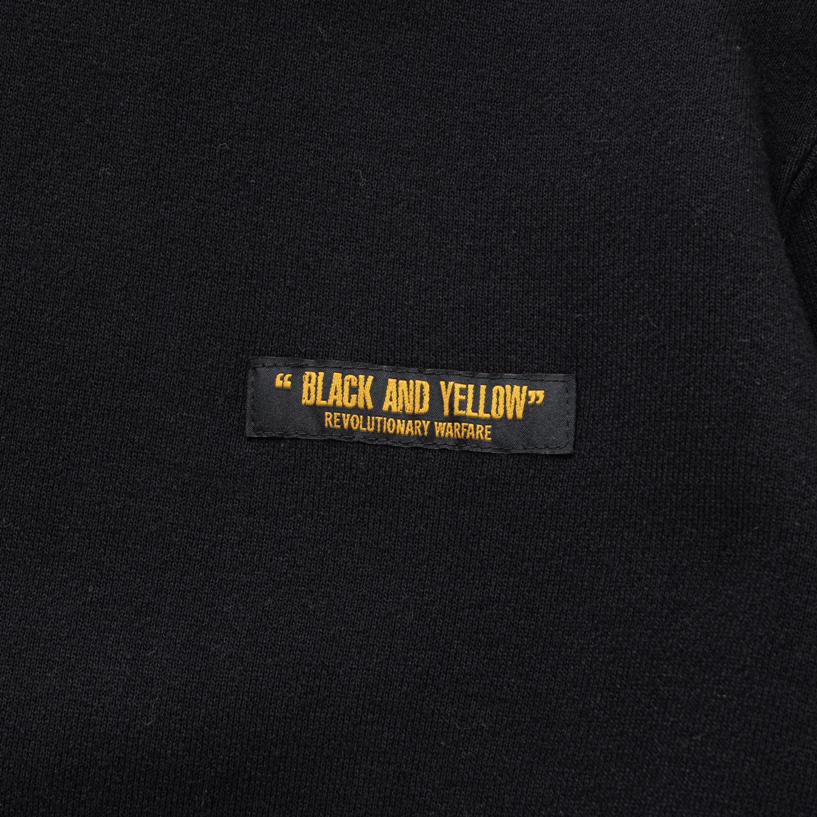 左胸に“BLACK AND YELLOW”の織ネームを叩きつけたデザイン。