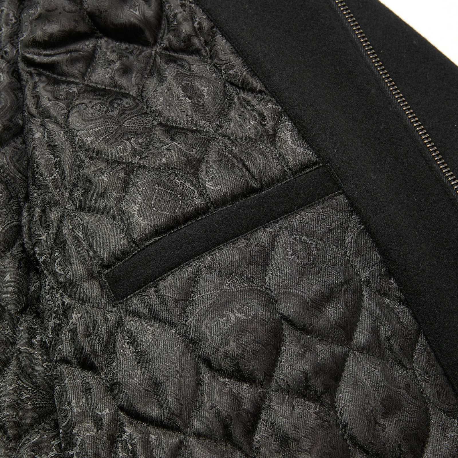 ヨーク部分をレザーで切り替え、裏地はオリジナルペイズリー柄の中綿キルト仕様。