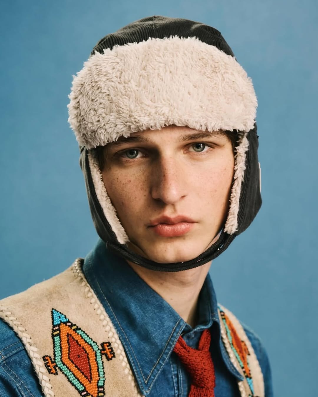 ボアのフラップを下げて耳当てとしても、上に捲って被ることも可能で、被り方でまた違った印象をお楽しみいただけます。