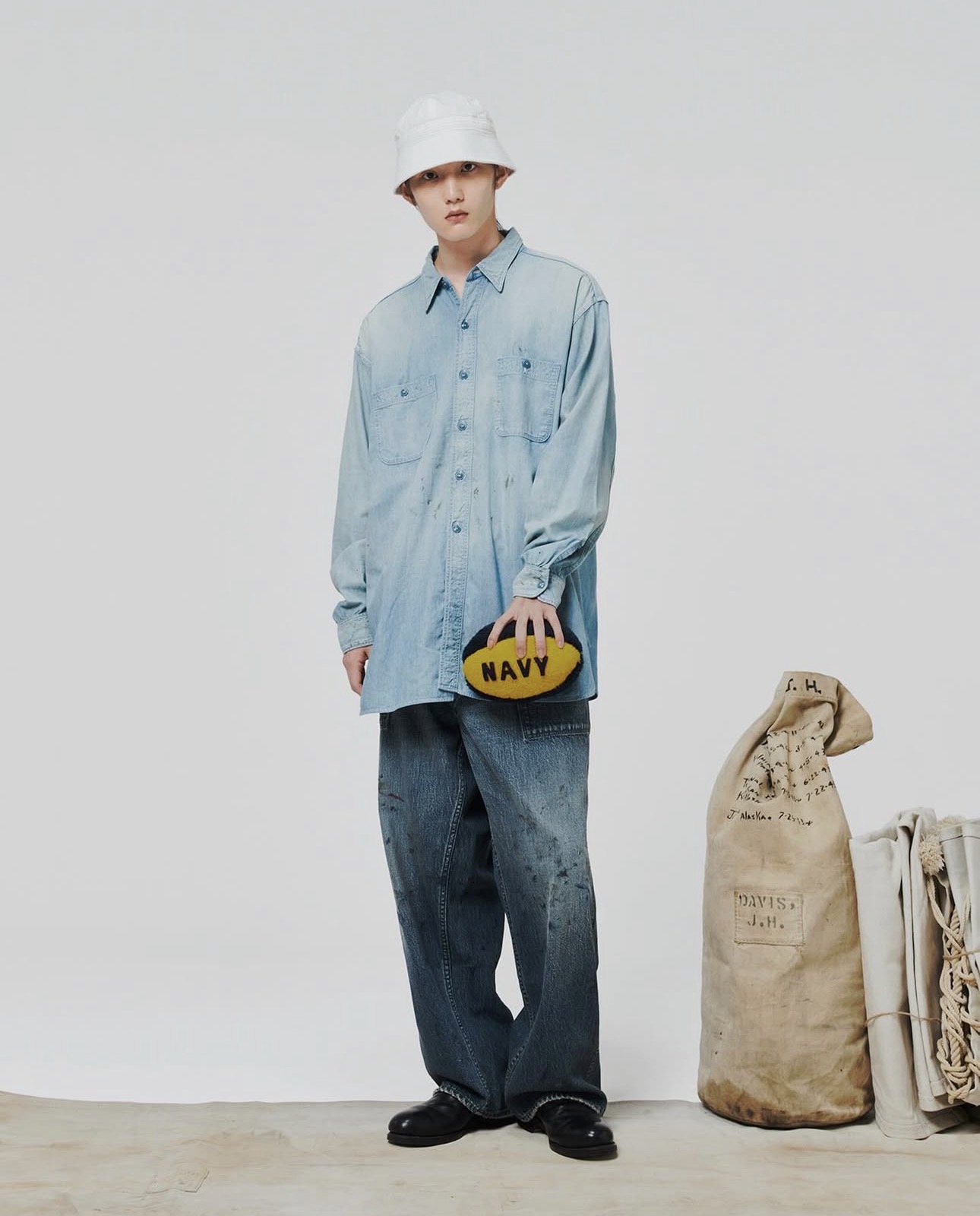 The early type of chambray shirt worn by US NAVY soldiers during daily duties, deck work, and maintenance tasks in the 1940s.
