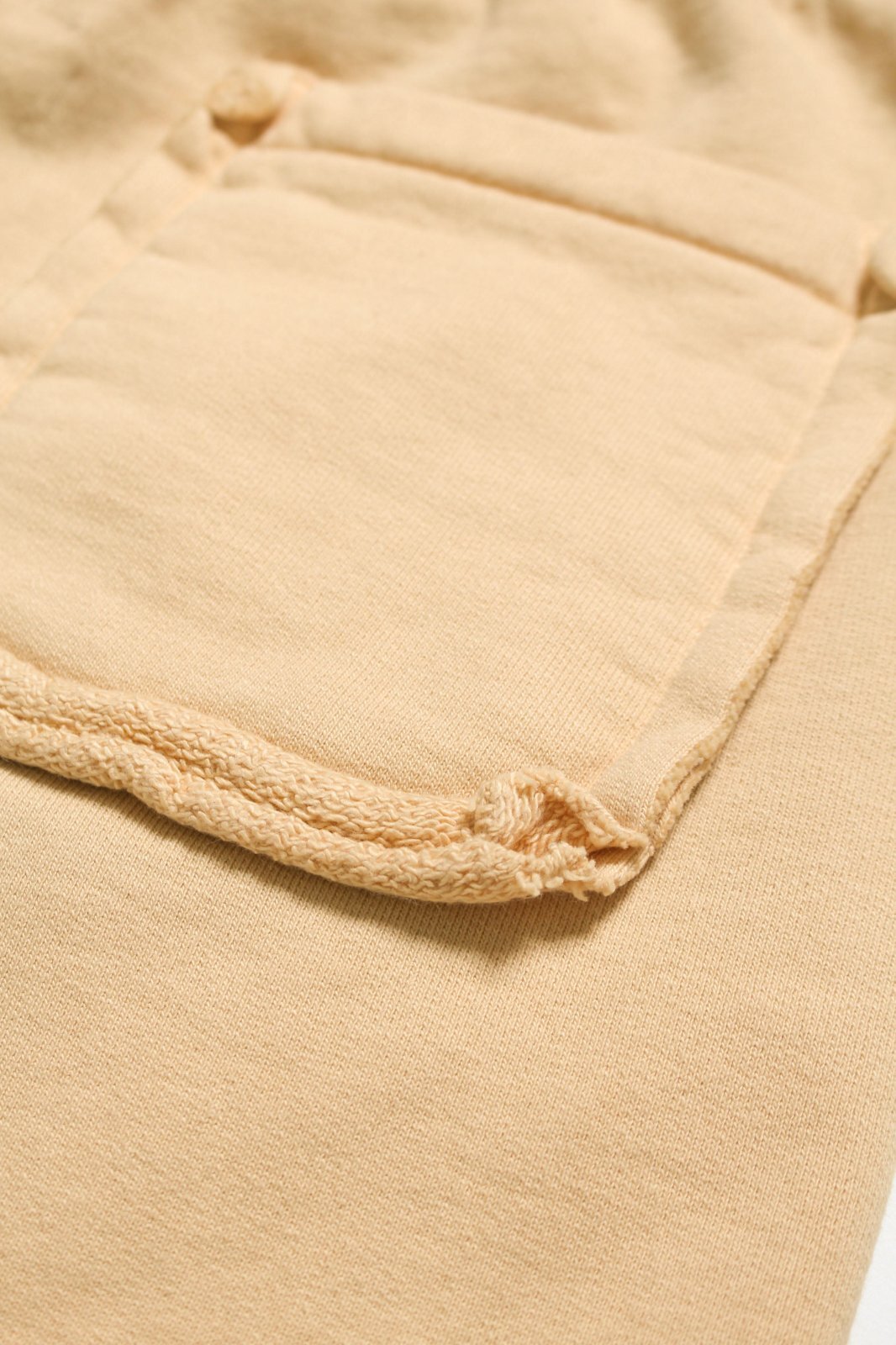 Finished with raw-cut hems to intentionally leave a sense of roughness and “unfinished” vintage character.