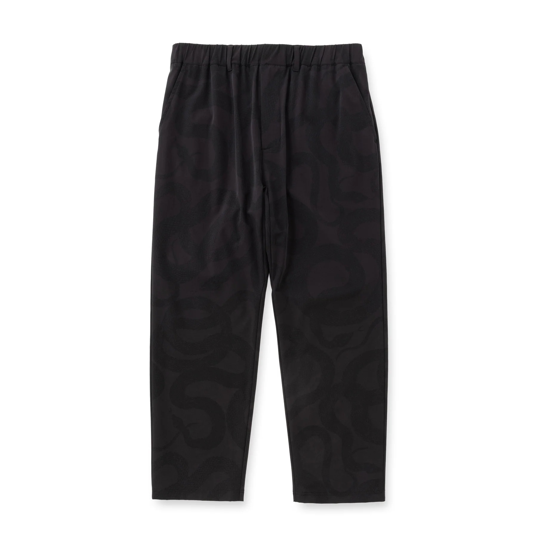 伸縮性のあるナイロンボディーを使用し、ブランドオリジナルのSNAKE PATTERNを同色で落としたデザイン。