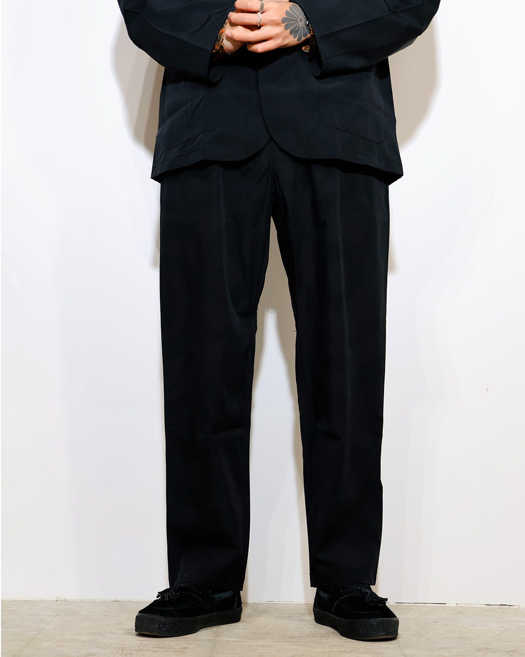 上下セットアップ展開のトラベルジャケットとスラックス。