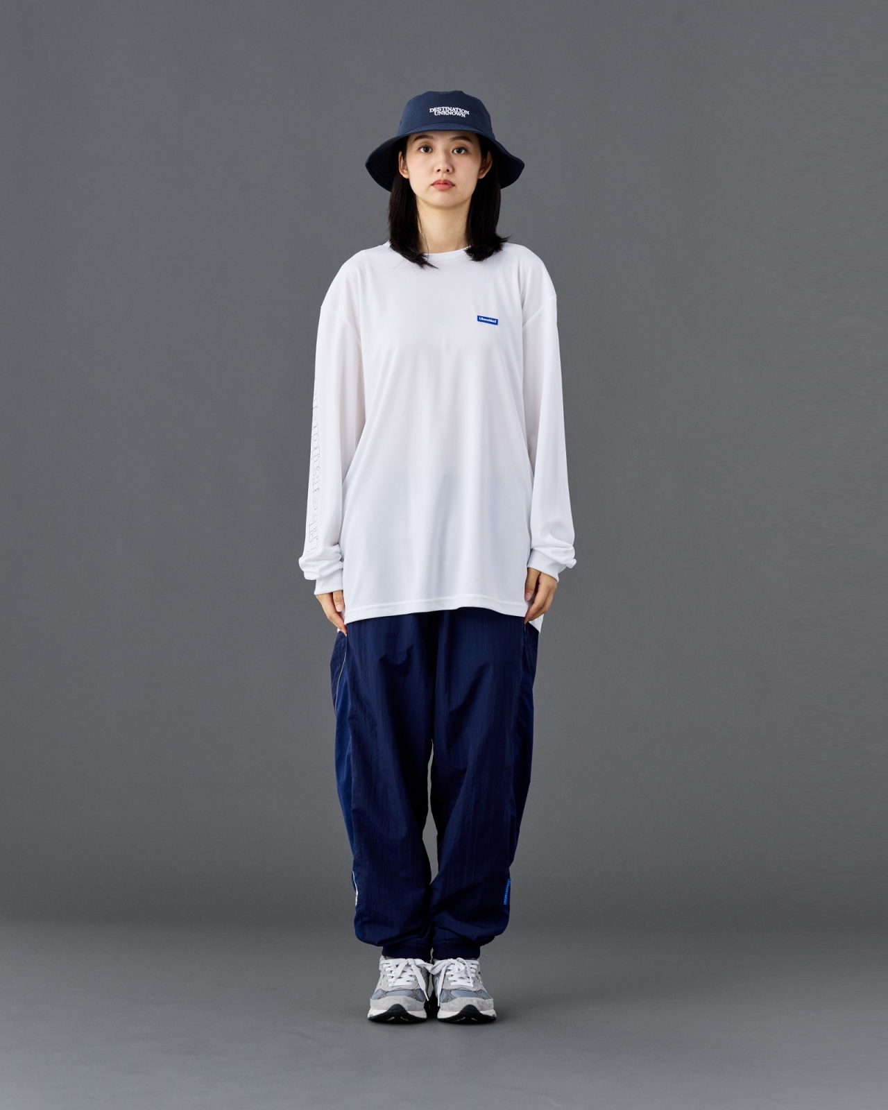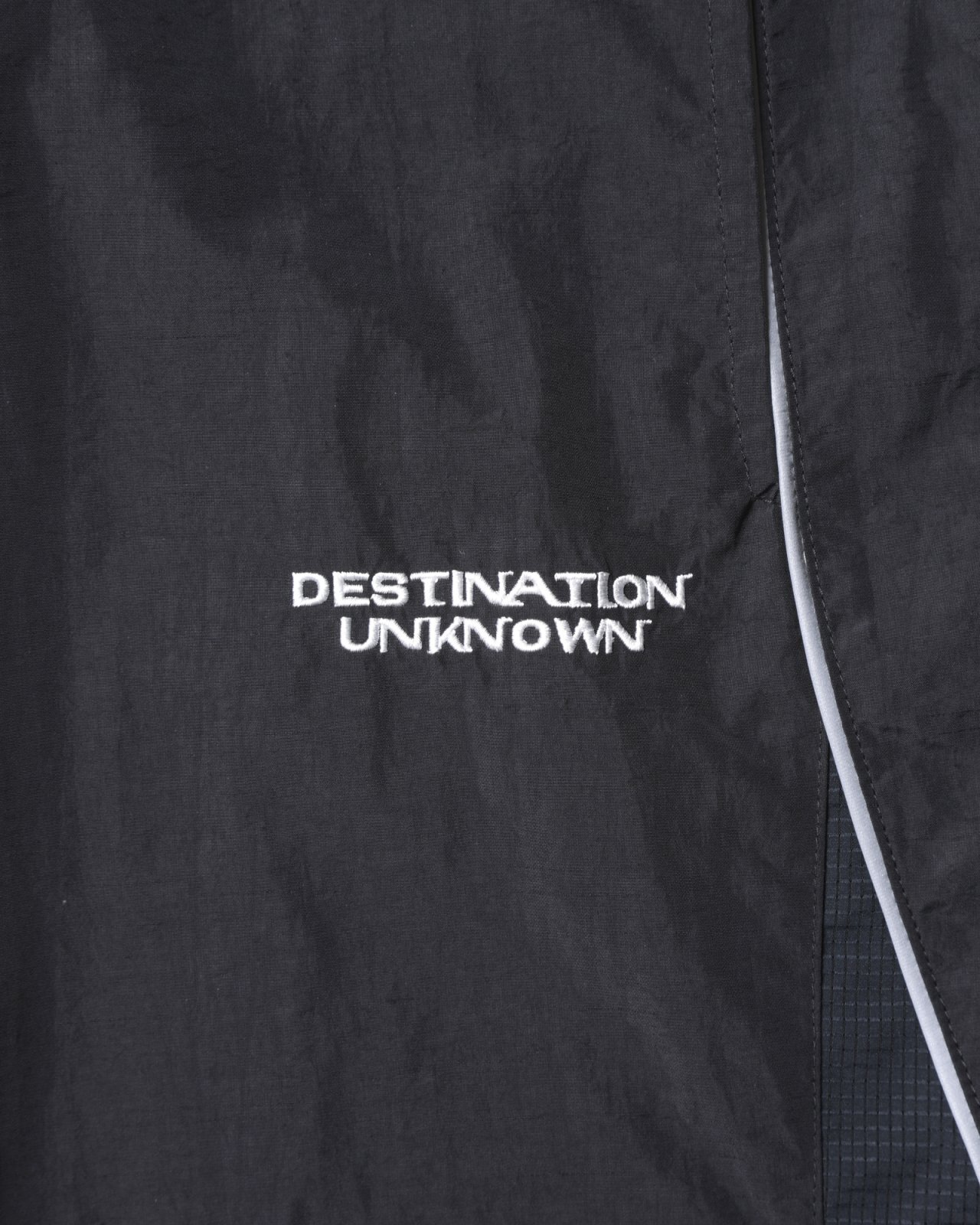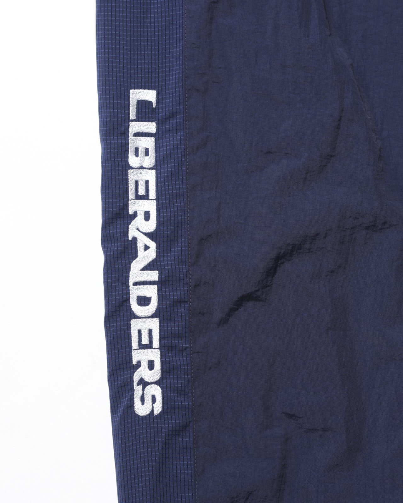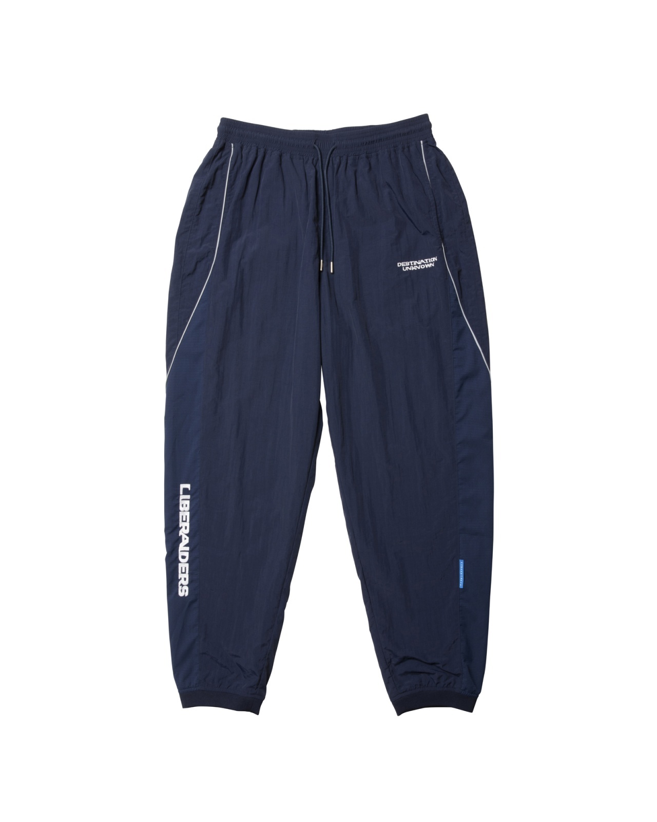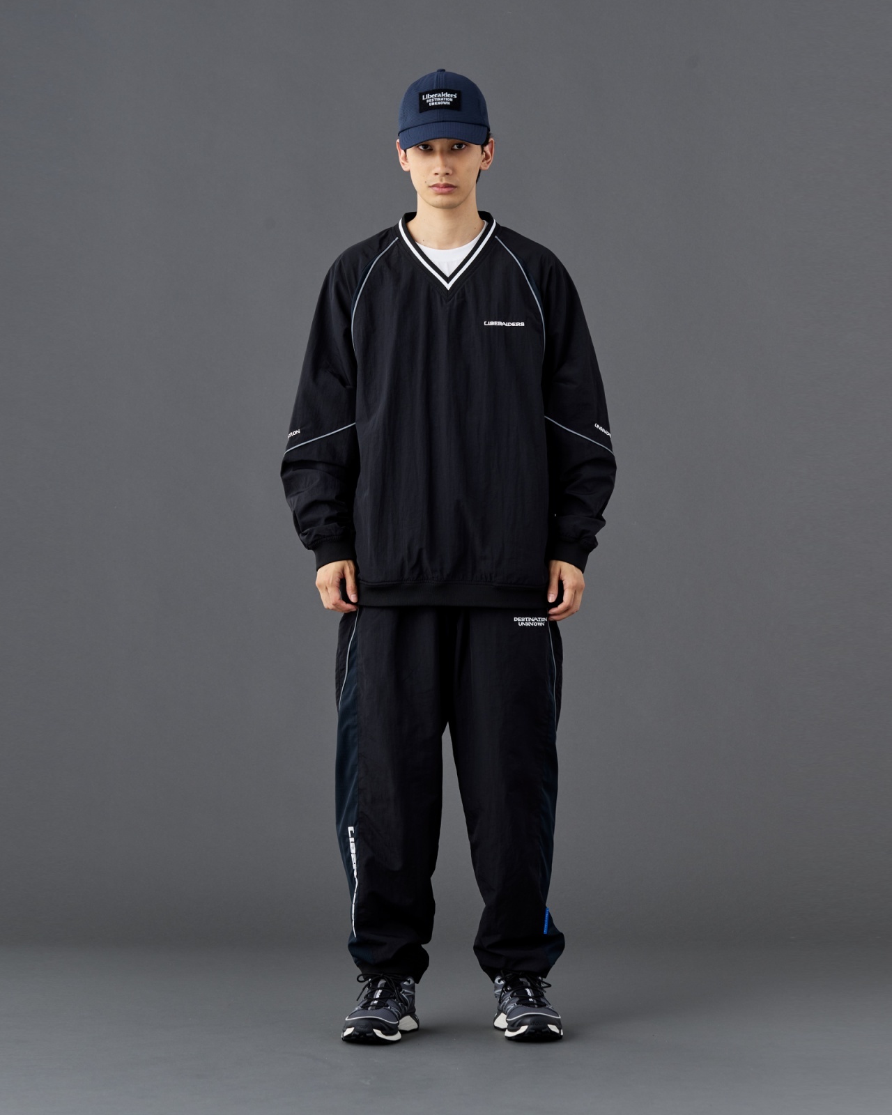 左前にDESTINATION UNKNOWN刺繍、右裾にLIBERAIDERS刺繍が入ります。