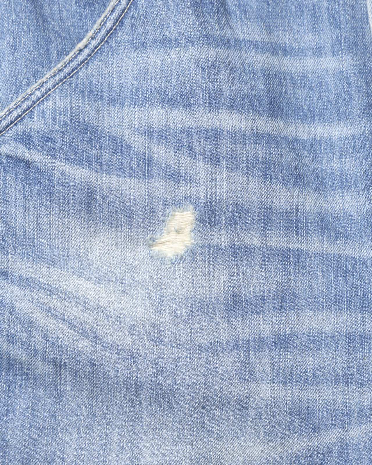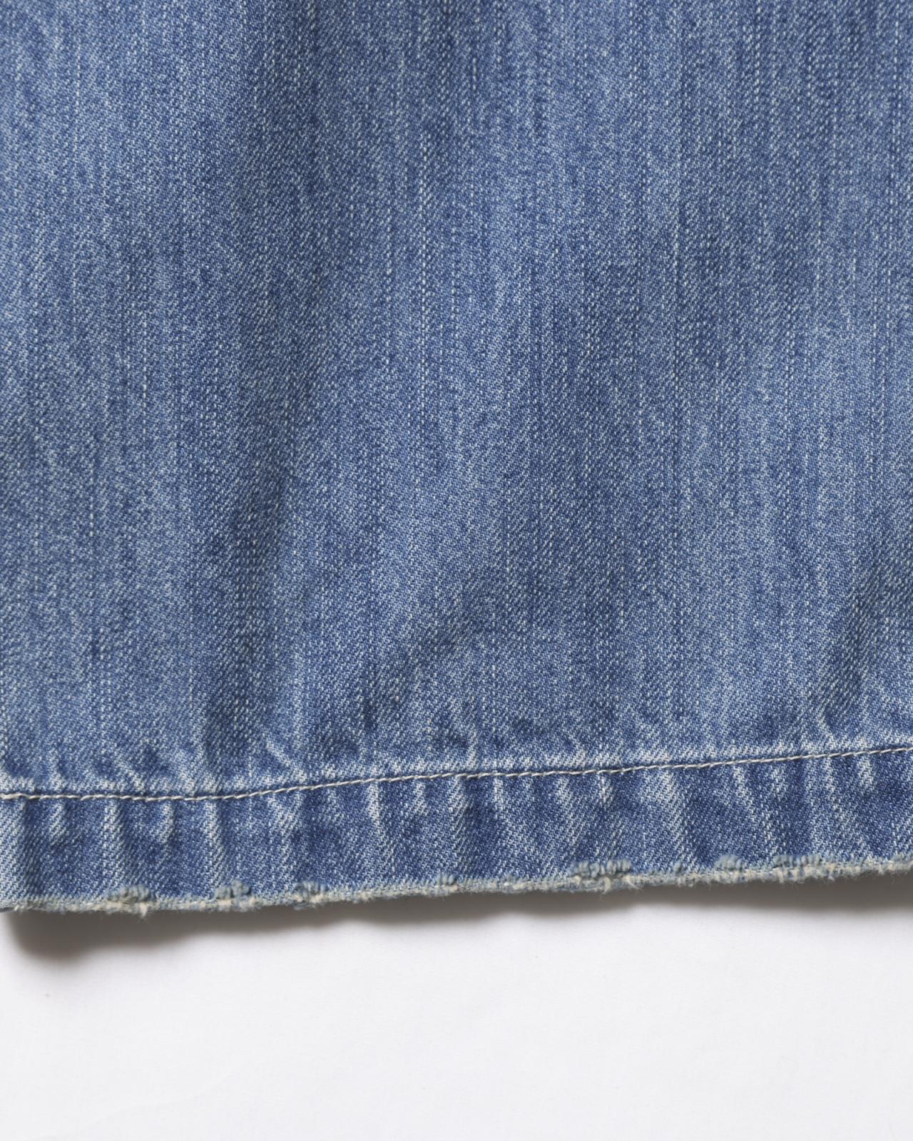 ポケット周り、ベルトループにはロープを入れて補強、全体にペンキ飛ばし加工を施したリアルな加工感のルックスに仕上げました。